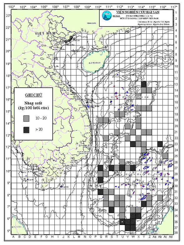 Đối tượng khai thác Trường nhiệt độ nước biển mặt (191) Cá nổi nhỏ (39) Trường dòng chảy tầng mặt (160) Cá ngừ (1) Cá ngừ đại dương (154) Cá ngừ vằn (115) Cá ngừ vây vàng (1) Mực ống (39) Mực xà (5) Mực nang (38) Khác (19)