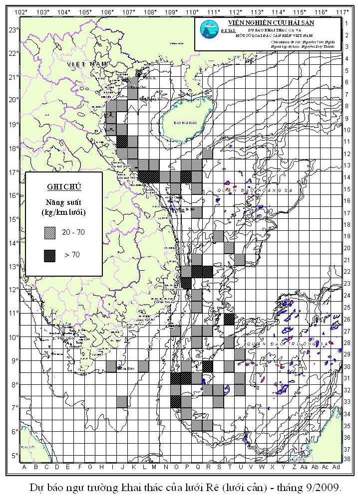 Trang nhất/ Dự báo khai thác theo nghề Rê, Vụ Nam, 09 năm 2009 Mùa vụ: Vụ Nam (09) | Năm dự báo: 2009 | Tháng dự báo: 09/2009 Nghề: Rê Cơ quan dự báo: