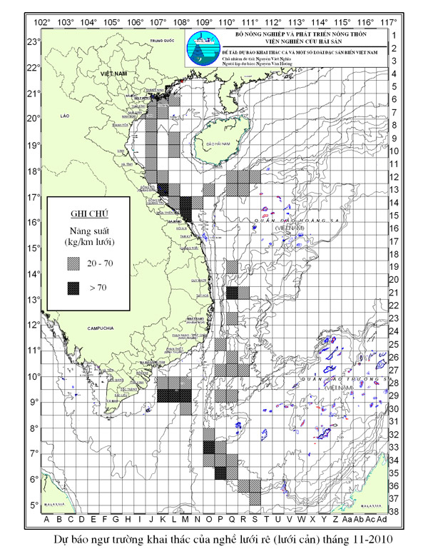 Trang nhất/ Dự báo khai thác theo nghề Rê, Vụ Bắc, 11 năm 2010 Mùa vụ: Vụ Nam (11) | Năm dự báo: 2010 | Tháng dự báo: 11/2010 Nghề: Rê Cơ quan dự báo: