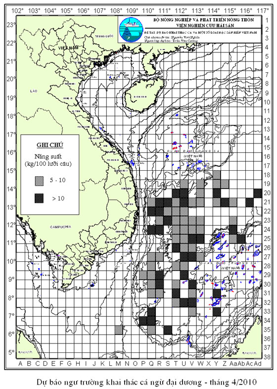 Trang nhất/ Dự báo khai thác theo đối tượng Cá ngừ đại dương, Vụ Nam, Cả vụ năm 2010 Mùa vụ: Vụ Nam (Cả vụ) | Năm dự báo: 2010 | Tháng dự báo: 12/2010 Đối tượng dự báo: Cá ngừ đại dương Cơ quan dự báo: Viện nghiên cứu Hải sản
