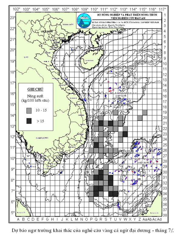 Trang nhất/ Dự báo khai thác theo nghề Câu vàng cá ngừ, Vụ Nam, 07 năm 2010 Mùa vụ: Vụ Nam (07) | Năm dự báo: 2010 | Tháng dự báo: 07/2010 Nghề: Câu cá ngừ đại dương Cơ quan dự báo: