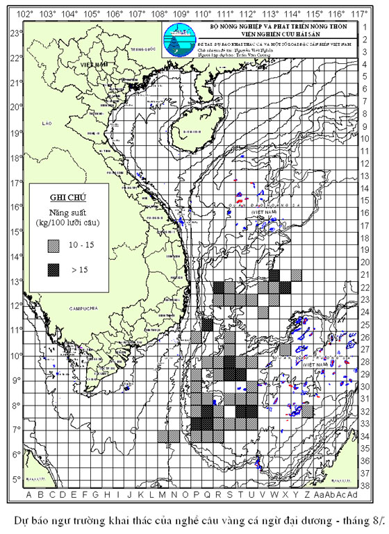 Trang nhất/ Dự báo khai thác theo nghề Câu vàng cá ngừ, Vụ Nam, 08 năm 2010 Mùa vụ: Vụ Nam (08) | Năm dự báo: 2010 | Tháng dự báo: 08/2010 Nghề: Câu cá ngừ đại dương Cơ quan dự báo: