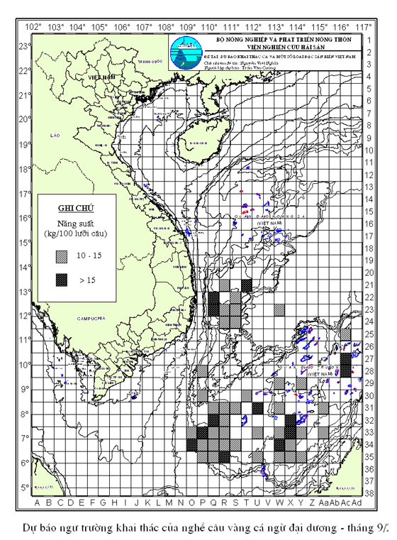 Trang nhất/ Dự báo khai thác theo nghề Câu vàng cá ngừ, Vụ Nam, 09 năm 2010 Mùa vụ: Vụ Nam (09) | Năm dự báo: 2010 | Tháng dự báo: 09/2010 Nghề: Câu cá ngừ đại dương Cơ quan dự báo: