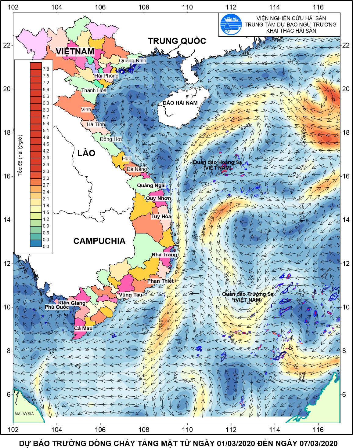 Trang nhất/ Dự báo khai thác theo đối tượng DB dòng chảy tầng mặt tháng 03/2020 Mùa vụ: Vụ Bắc (DB dòng chảy tầng mặt tháng 03/2020) | Năm dự báo: 2020 | Tháng dự báo: 03/2020 Đối tượng dự báo: Trường dòng chảy tầng mặt Cơ quan dự báo: Trung tâm Dự báo ngư trường Khai thác hải sản