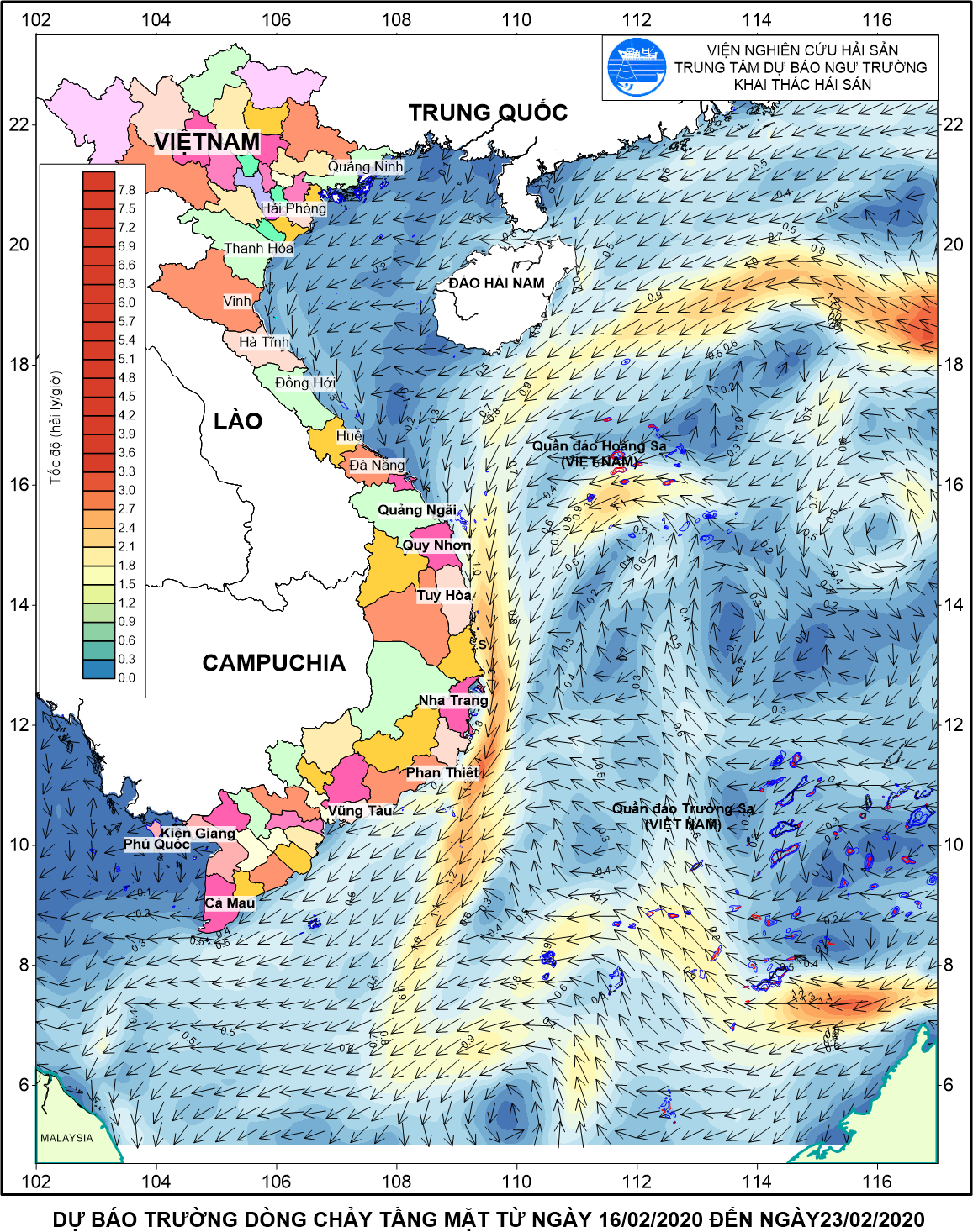 Trang nhất/ Dự báo khai thác theo đối tượng DB Dòng chảy tầng mặt từ ngày 16-23/022020 Mùa vụ: Vụ Bắc (DB Dòng chảy tầng mặt từ ngày 16-23/022020) | Năm dự báo: 2020 | Tháng dự báo: 02/2020 Đối tượng dự báo: Trường dòng chảy tầng mặt Cơ quan dự báo: Trung tâm Dự báo ngư trường Khai thác hải sản