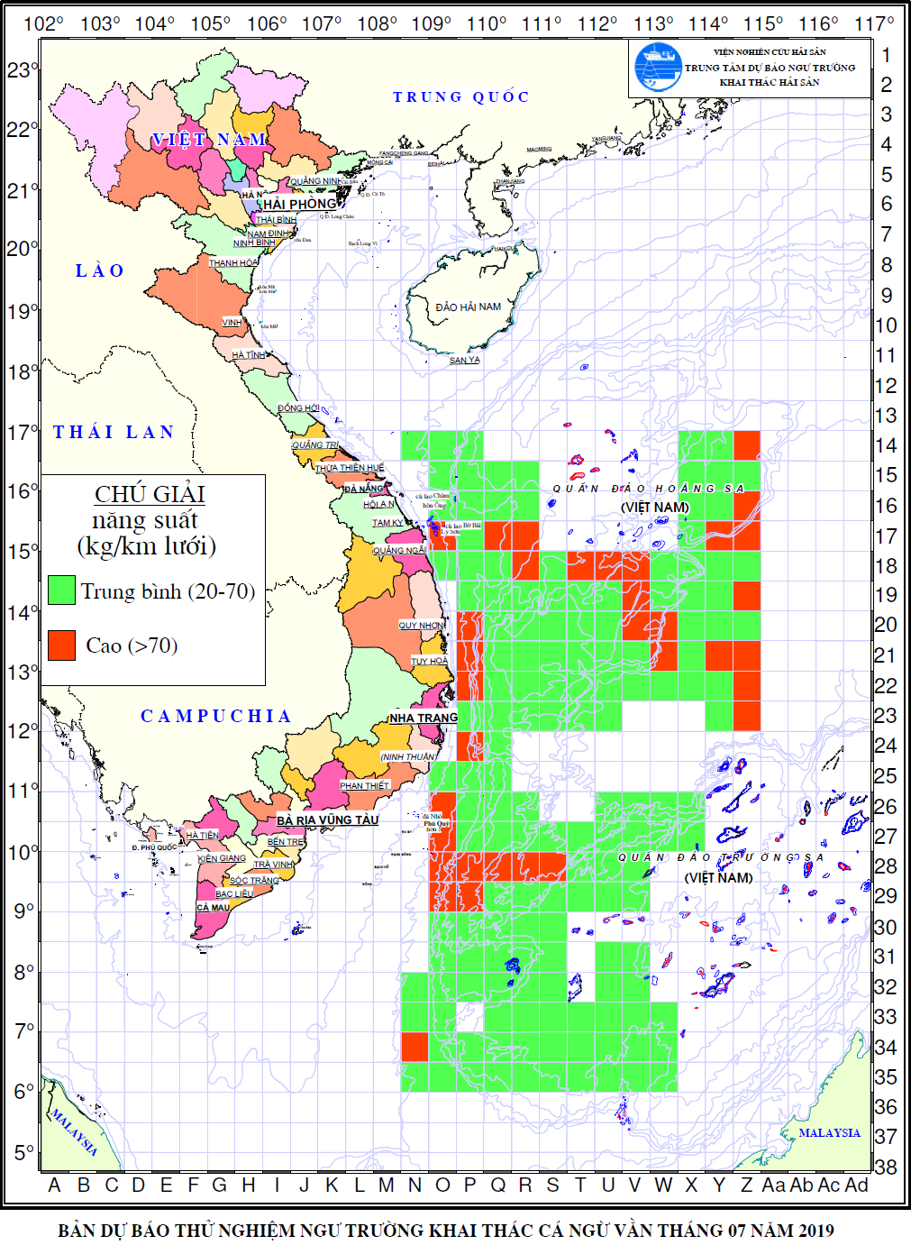 Trang nhất/ Dự báo khai thác theo đối tượng DBNTKT cá ngừ vằn tháng 7/2019 Mùa vụ: Vụ Nam (DBNTKT cá ngừ vằn tháng 7/2019 ) | Năm dự báo: 2019 | Tháng dự báo: 07/2019 Đối tượng dự báo: Cá ngừ vằn Cơ quan dự báo: Trung tâm Dự báo ngư trường Khai thác hải sản