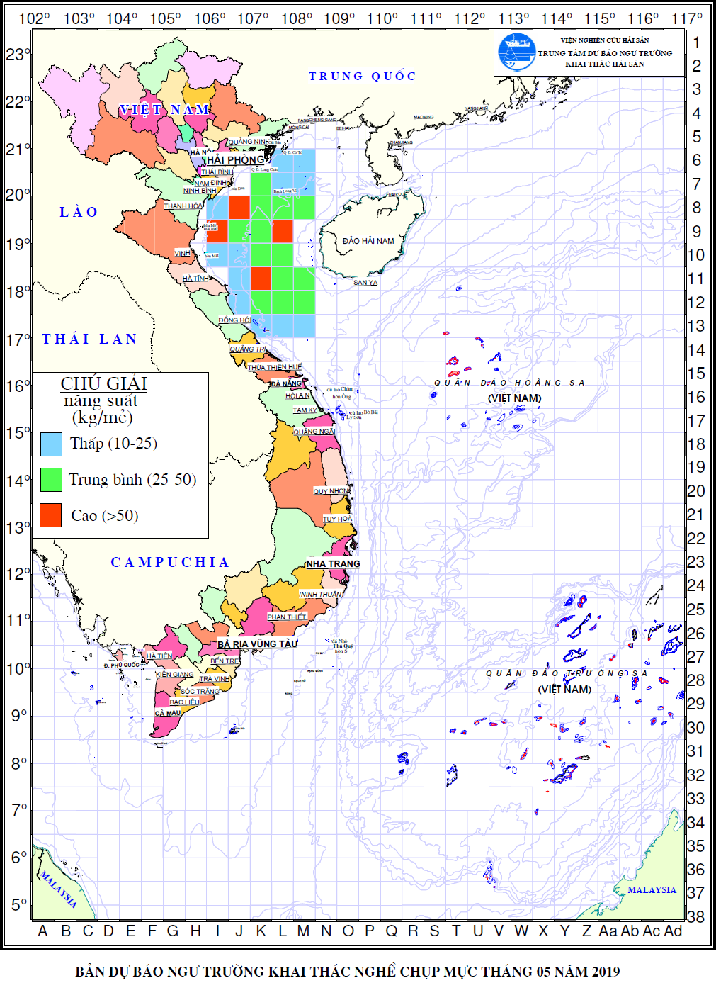Trang nhất/ Dự báo khai thác theo nghề DBNTKT nghề chụp mực tháng 05/2019 Mùa vụ: Vụ Nam (DBNTKT nghề chụp mực tháng 05/2019) | Năm dự báo: 2019 | Tháng dự báo: 05/2019 Nghề: Chụp mực Cơ quan dự báo: Trung tâm Dự báo ngư trường Khai thác hải sản
