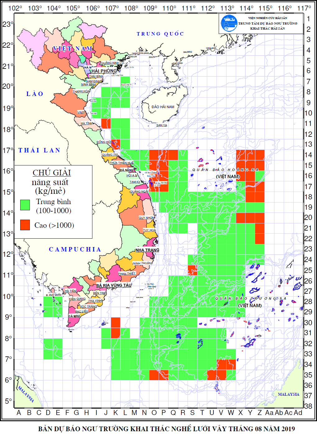 Trang nhất/ Dự báo khai thác theo nghề DBNTKT thác nghề vây tháng 8/2019 Mùa vụ: Vụ Nam (DBNTKT thác nghề vây tháng 8/2019 ) | Năm dự báo: 2019 | Tháng dự báo: 08/2019 Nghề: Vây Cơ quan dự báo: Trung tâm Dự báo ngư trường Khai thác hải sản