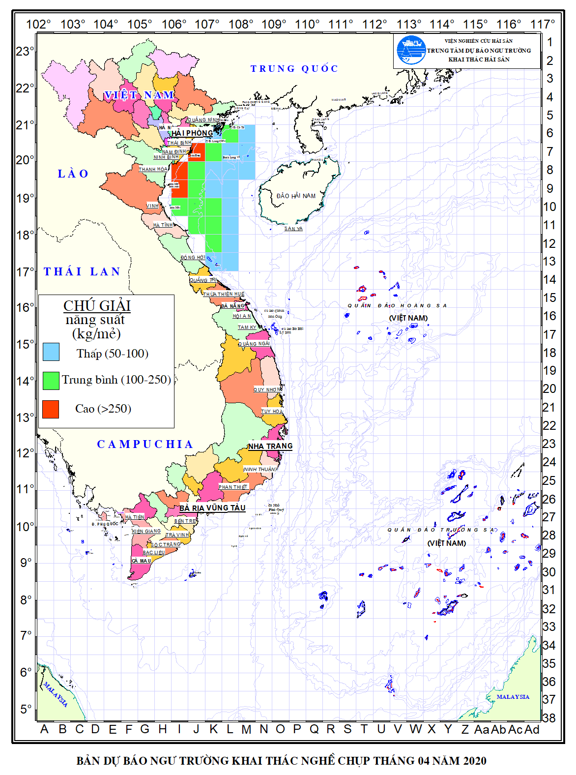 Trang nhất/ Dự báo khai thác theo nghề DBNTKT thác nghềchụp mực tháng 04/2020 Mùa vụ: Vụ Nam (DBNTKT thác nghềchụp mực tháng 04/2020 ) | Năm dự báo: 2020 | Tháng dự báo: 04/2020 Nghề: Chụp mực Cơ quan dự báo: Trung tâm Dự báo ngư trường Khai thác hải sản
