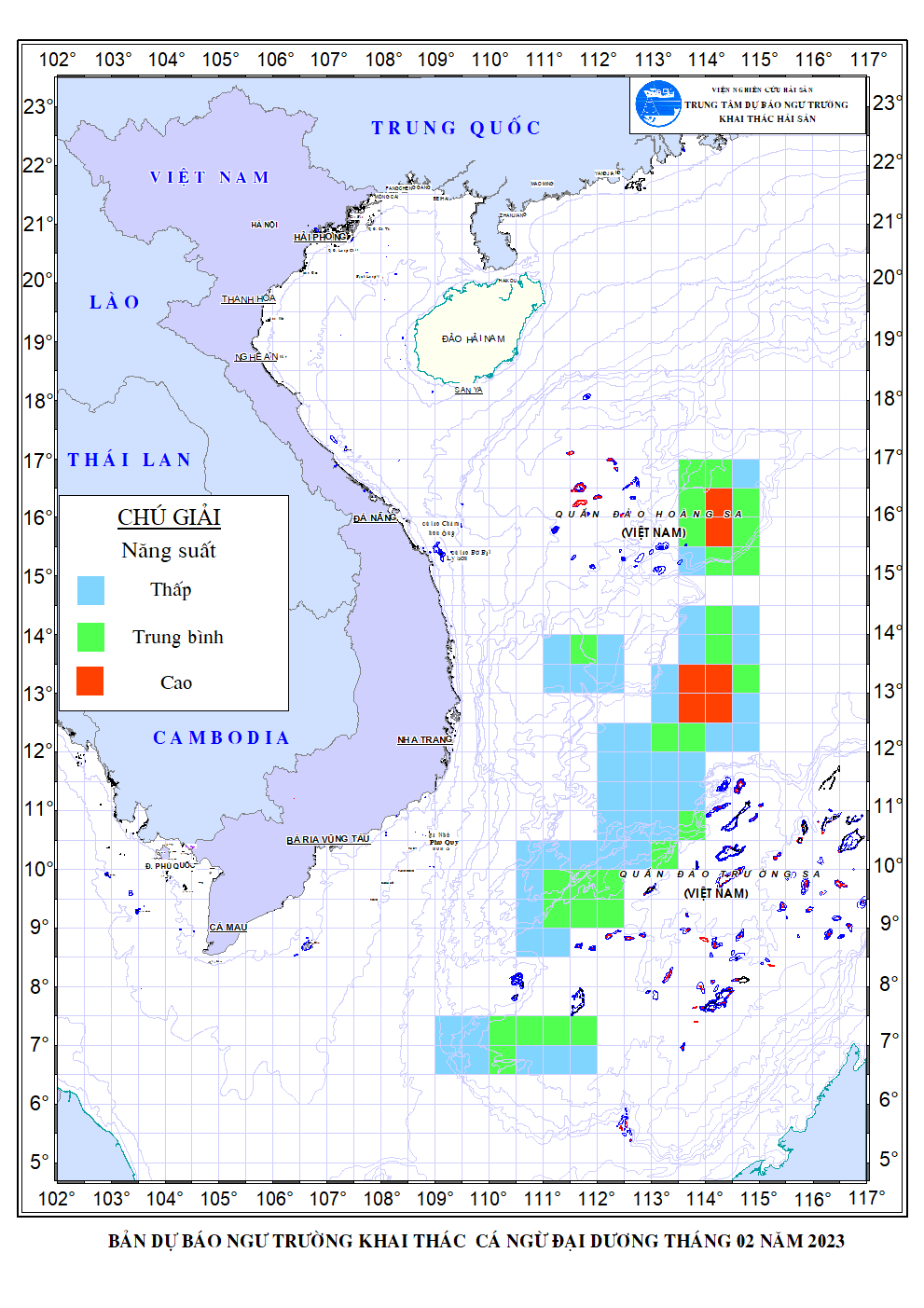 Trang nhất/ Dự báo khai thác theo nghề Dự báo cá ngừ đại dương tháng 02/2023 Mùa vụ: Vụ Bắc () | Năm dự báo: 2023 | Tháng dự báo: 02/2023 Nghề: Câu cá ngừ đại dương Cơ quan dự báo: Trung tâm Dự báo ngư trường Khai thác hải sản