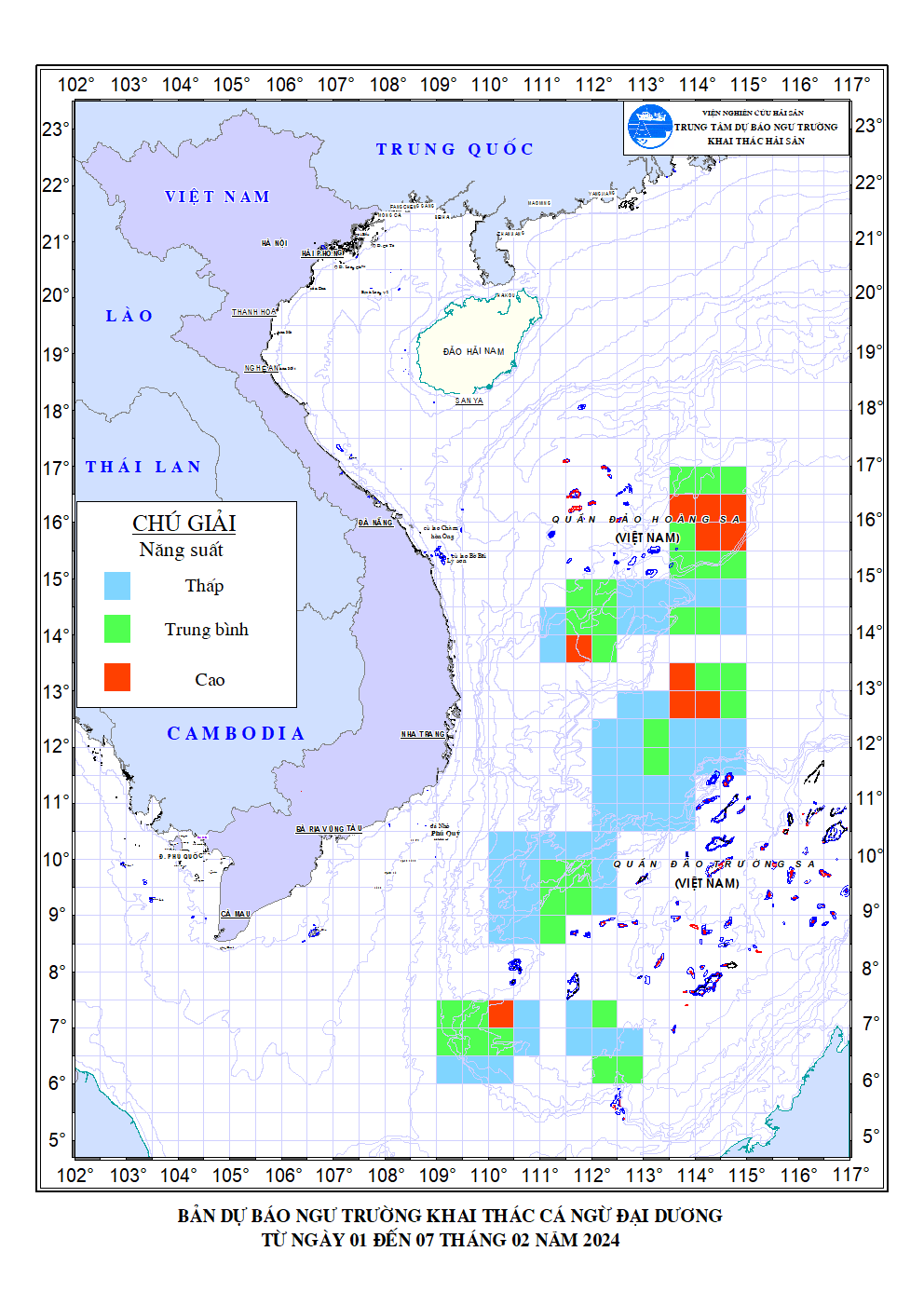 Các mục khác... Dự báo nghề câu cá ngừ đại dương từ 24-29/2/2024 Dự báo cá ngừ đại dương từ 16-23/2/2024 Dự báo cá ngừ đại dương từ 08-15/02/2024 Dự báo ngư trường nghề lưới rê tháng 02/2024 Dự báo ngư trường nghề lưới vây tháng 02/2024