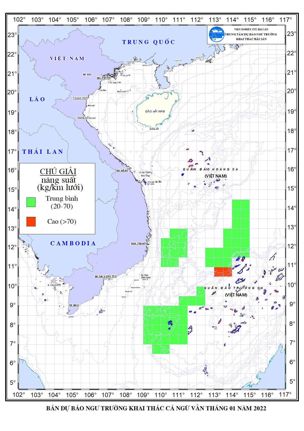 Trang nhất/ Dự báo khai thác theo đối tượng Dự báo cá ngừ vằn tháng 01/2022 Mùa vụ: Vụ Bắc () | Năm dự báo: 2022 | Tháng dự báo: 01/2022 Đối tượng dự báo: Cá ngừ vằn Cơ quan dự báo: Trung tâm Dự báo ngư trường Khai thác hải sản
