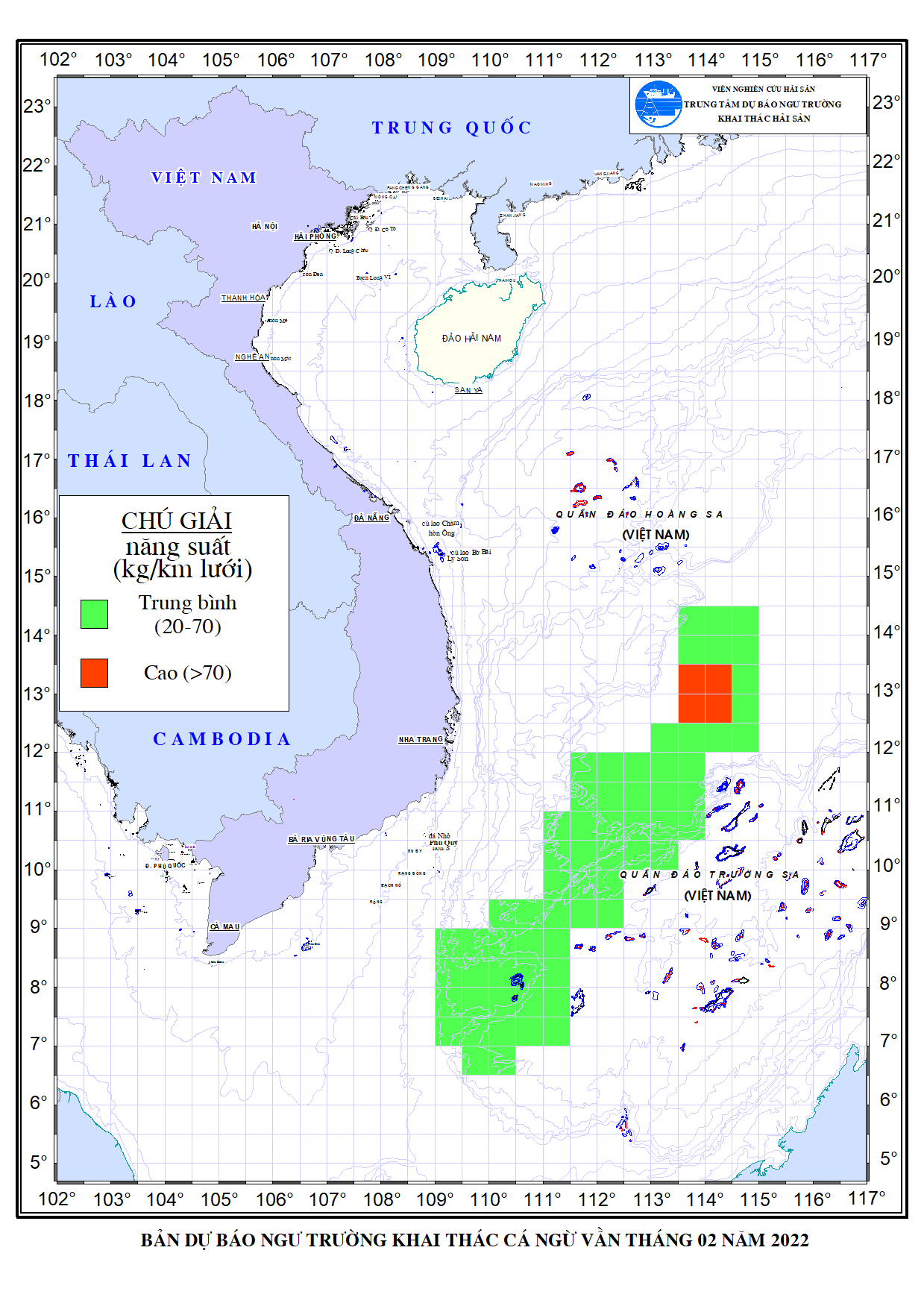 Các mục khác... Dự báo ngư trường cá nổi nhỏ tháng 02/2024 Dự báo ngư trường cá ngừ vằn tháng 02/2024 Dự báo dòng chảy biển tầng mặt từ 08-15/01/2024 Dự báo nhiệt độ nước biển tầng mặt từ 08-15/01/2024 Dự báo dòng chảy biển tầng mặt từ 01-07/01/2024
