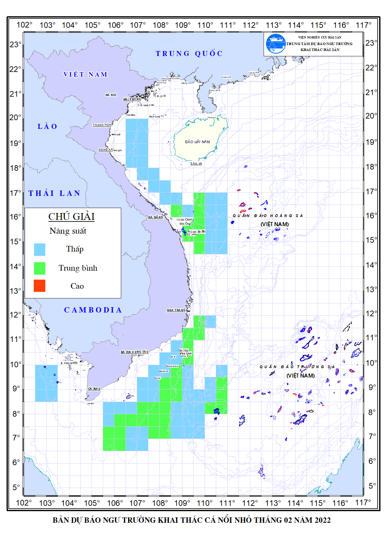 Trang nhất/ Dự báo khai thác theo đối tượng Dự báo cá nổi nhỏ tháng 02/2022 Mùa vụ: Vụ Bắc () | Năm dự báo: 2022 | Tháng dự báo: 02/2022 Đối tượng dự báo: Cá nổi nhỏ Cơ quan dự báo: Trung tâm Dự báo ngư trường Khai thác hải sản