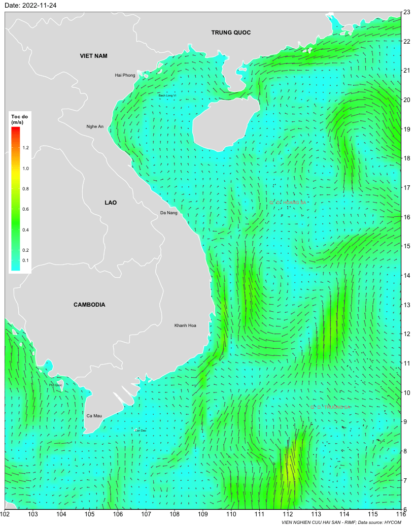 Trang nhất/ Dự báo khai thác theo đối tượng Dự báo dòng chảy bề mặt biển từ 24-30/11/2022 Mùa vụ: Vụ Bắc () | Năm dự báo: 2022 | Tháng dự báo: 11/2022 Đối tượng dự báo: Trường dòng chảy tầng mặt Cơ quan dự báo: Trung tâm Dự báo ngư trường Khai thác hải sản