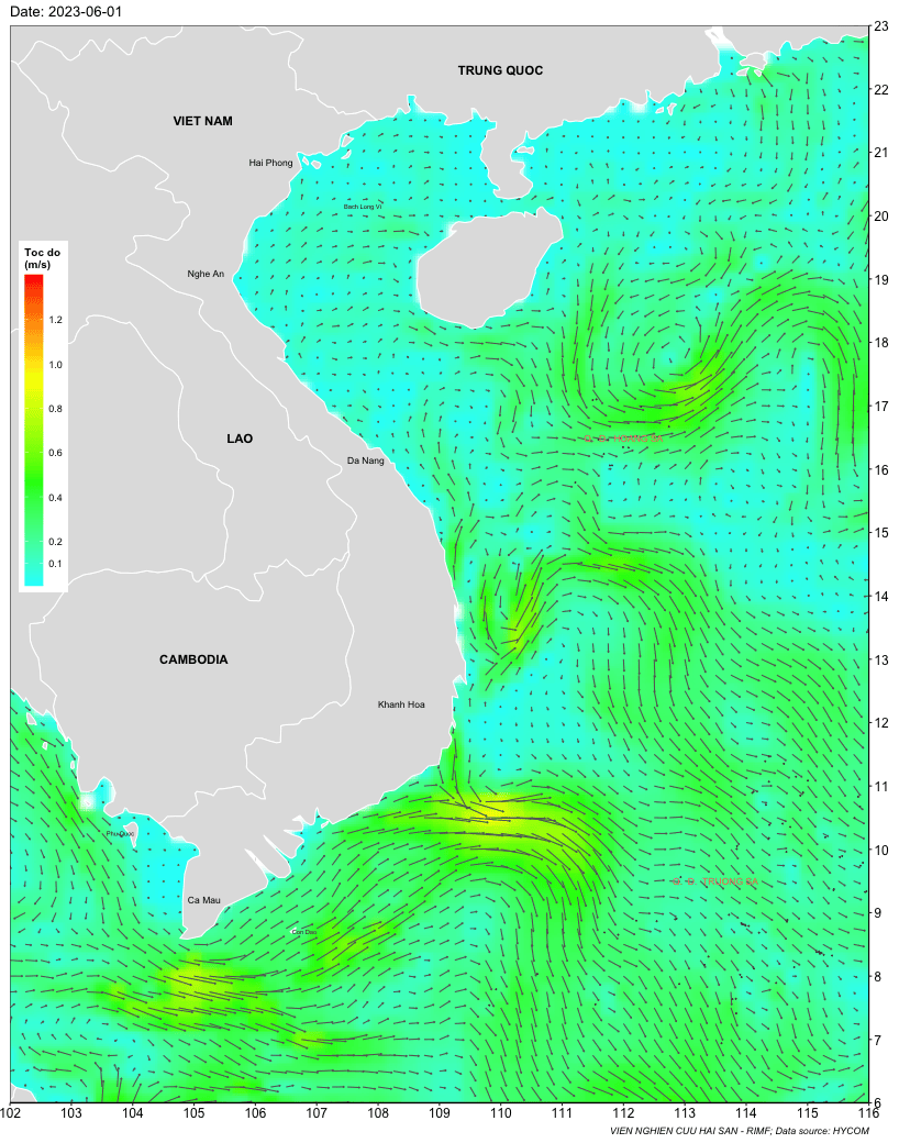 Trang nhất/ Dự báo khai thác theo đối tượng Dự báo dòng chảy biển tầng mặt từ 01-07/6/2023 Mùa vụ: Vụ Nam () | Năm dự báo: 2023 | Tháng dự báo: 06/2023 Đối tượng dự báo: Trường dòng chảy tầng mặt Cơ quan dự báo: Trung tâm Dự báo ngư trường Khai thác hải sản