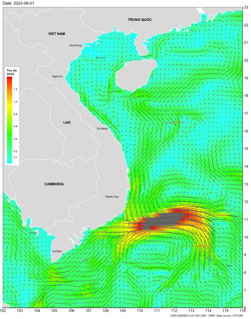Trang nhất/ Dự báo khai thác theo đối tượng Dự báo dòng chảy biển tầng mặt từ 01 - 07/9/2023 Mùa vụ: Vụ Nam () | Năm dự báo: 2023 | Tháng dự báo: 09/2023 Đối tượng dự báo: Trường dòng chảy tầng mặt Cơ quan dự báo: Trung tâm Dự báo ngư trường Khai thác hải sản