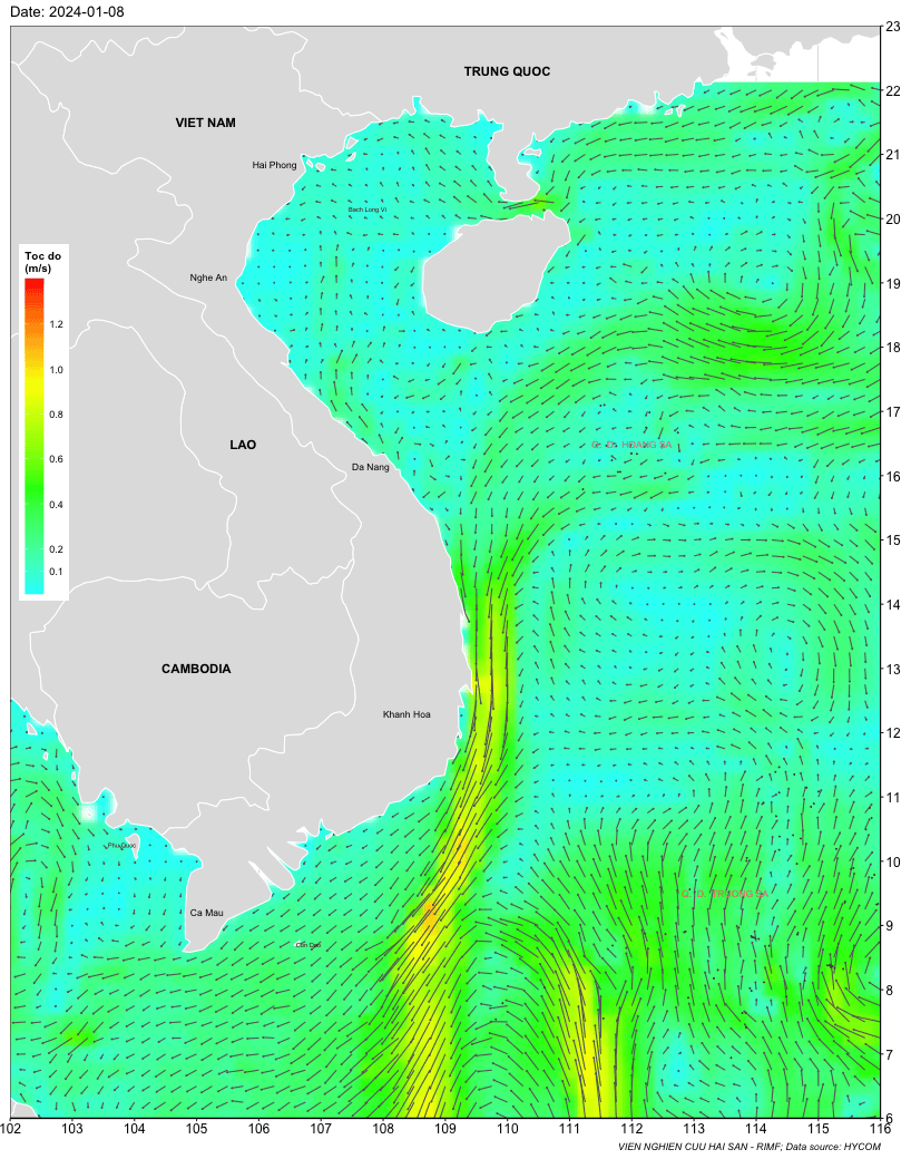 Trang nhất/ Dự báo khai thác theo đối tượng Dự báo dòng chảy biển tầng mặt từ 08-15/01/2024 Mùa vụ: Vụ Bắc () | Năm dự báo: 2024 | Tháng dự báo: 01/2024 Đối tượng dự báo: Trường dòng chảy tầng mặt Cơ quan dự báo: Trung tâm Dự báo ngư trường Khai thác hải sản