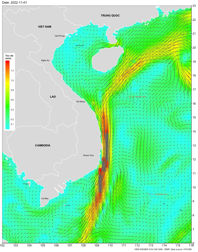 Trang nhất/ Dự báo khai thác theo đối tượng Dự báo dòng chảy biển tầng mặt từ 1-7/11/2022 Mùa vụ: Vụ Bắc () | Năm dự báo: 2022 | Tháng dự báo: 11/2022 Đối tượng dự báo: Trường dòng chảy tầng mặt Cơ quan dự báo: Trung tâm Dự báo ngư trường Khai thác hải sản