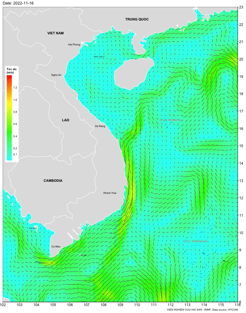Trang nhất/ Dự báo khai thác theo đối tượng Dự báo dòng chảy biển tầng mặt từ 16-23/11/2022 Mùa vụ: Vụ Bắc () | Năm dự báo: 2022 | Tháng dự báo: 11/2022 Đối tượng dự báo: Trường dòng chảy tầng mặt Cơ quan dự báo: Trung tâm Dự báo ngư trường Khai thác hải sản