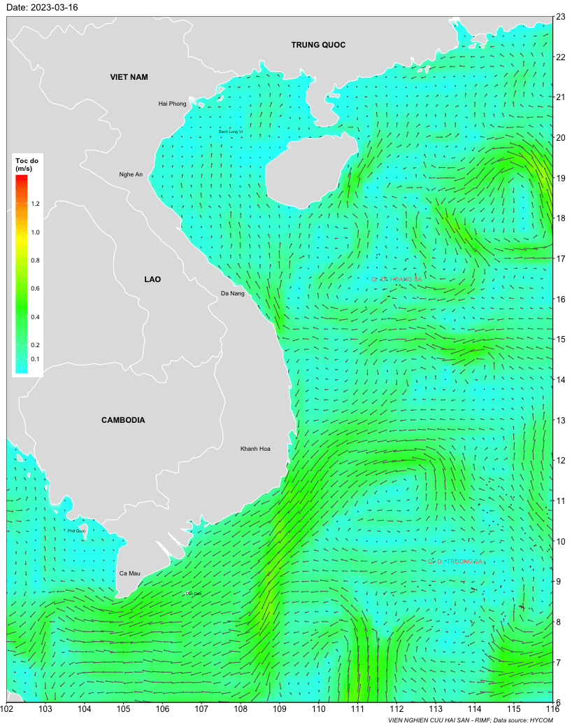 Trang nhất/ Dự báo khai thác theo đối tượng Dự báo dòng chảy biển tầng mặt từ 16-23/3/2023 Mùa vụ: Vụ Bắc () | Năm dự báo: 2023 | Tháng dự báo: 03/2023 Đối tượng dự báo: Trường dòng chảy tầng mặt Cơ quan dự báo: Trung tâm Dự báo ngư trường Khai thác hải sản