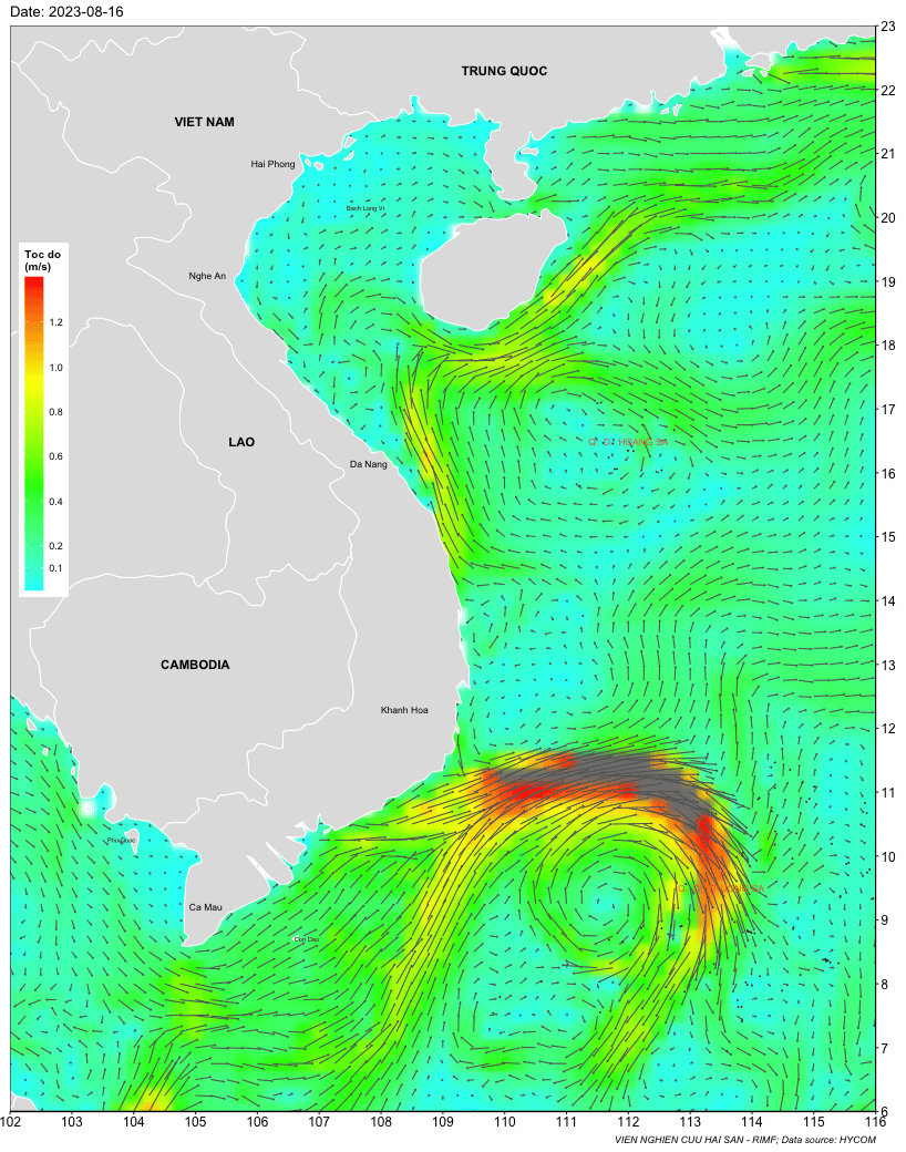 Trang nhất/ Dự báo khai thác theo đối tượng Dự báo dòng chảy biển tầng mặt từ 16-23/8/2023 Mùa vụ: Vụ Nam () | Năm dự báo: 2023 | Tháng dự báo: 08/2023 Đối tượng dự báo: Trường dòng chảy tầng mặt Cơ quan dự báo: Trung tâm Dự báo ngư trường Khai thác hải sản