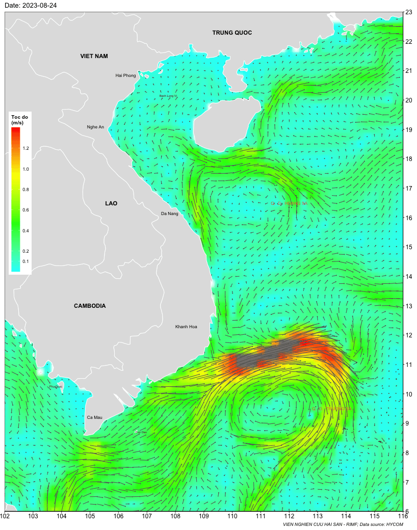 Trang nhất/ Dự báo khai thác theo đối tượng Dự báo dòng chảy biển tầng mặt từ 24-31/8/2023 Mùa vụ: Vụ Nam () | Năm dự báo: 2023 | Tháng dự báo: 08/2023 Đối tượng dự báo: Trường dòng chảy tầng mặt Cơ quan dự báo: Trung tâm Dự báo ngư trường Khai thác hải sản
