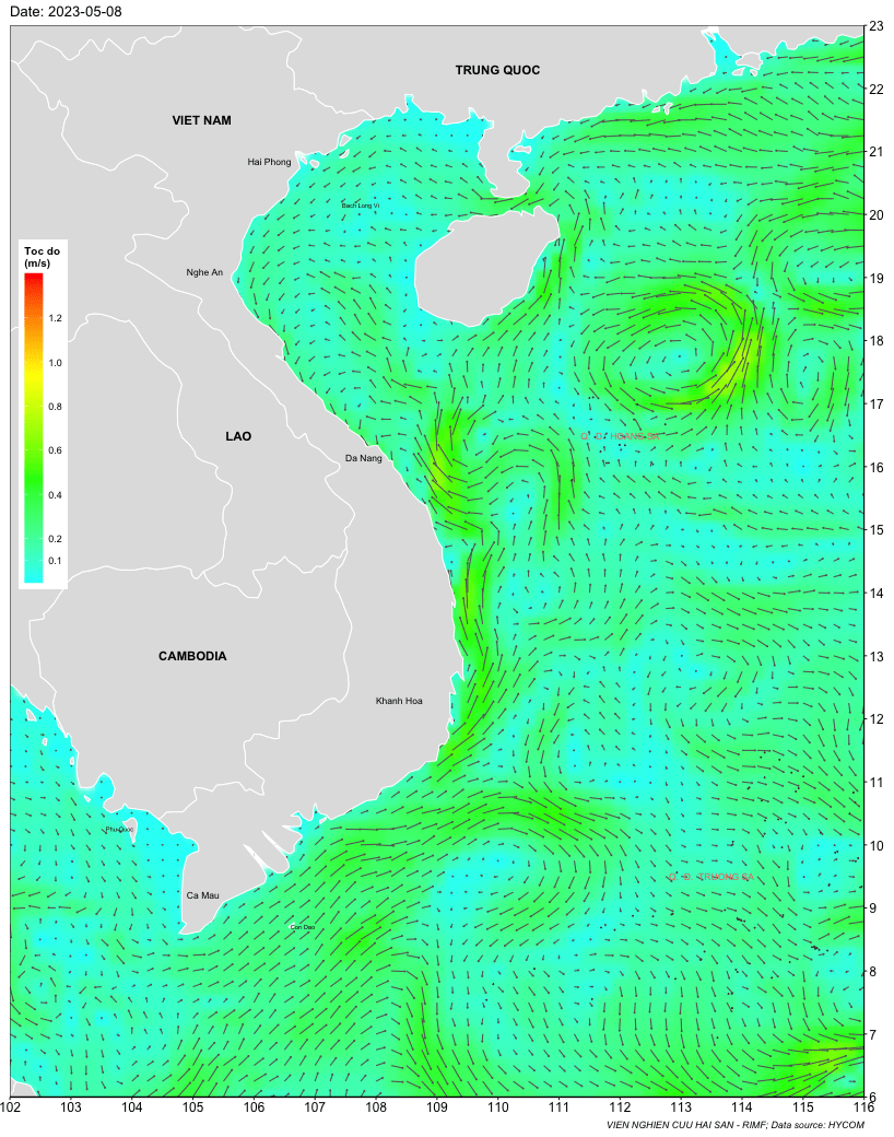 Trang nhất/ Dự báo khai thác theo đối tượng Dự báo dòng chảy tầng mặt từ 8-15/5/2023 Mùa vụ: Vụ Nam () | Năm dự báo: 2023 | Tháng dự báo: 05/2023 Đối tượng dự báo: Trường dòng chảy tầng mặt Cơ quan dự báo: Trung tâm Dự báo ngư trường Khai thác hải sản