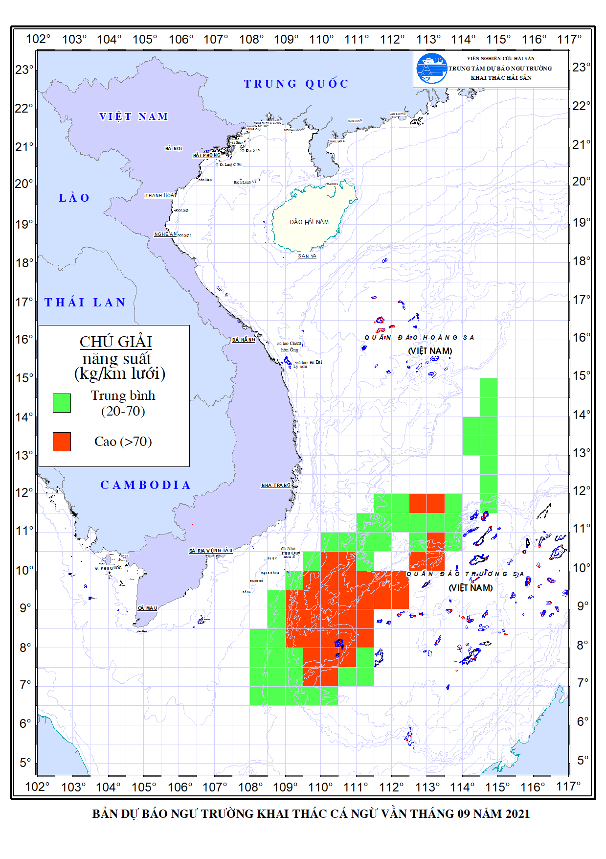 Trang nhất/ Dự báo khai thác theo đối tượng Dự báo hạn tháng cá ngừ vằn tháng 9/2021 Mùa vụ: Vụ Nam () | Năm dự báo: 2021 | Tháng dự báo: 09/2021 Đối tượng dự báo: Cá ngừ vằn Cơ quan dự báo: Trung tâm Dự báo ngư trường Khai thác hải sản
