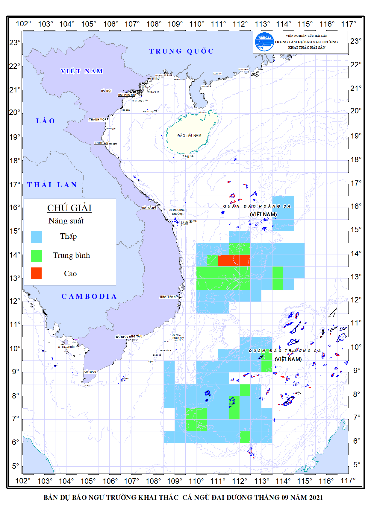 Trang nhất/ Dự báo khai thác theo nghề Dự báo hạn tháng nghề câu cá ngừ đại dương Mùa vụ: Vụ Nam () | Năm dự báo: 2021 | Tháng dự báo: 09/2021 Nghề: Câu cá ngừ đại dương Cơ quan dự báo: Trung tâm Dự báo ngư trường Khai thác hải sản