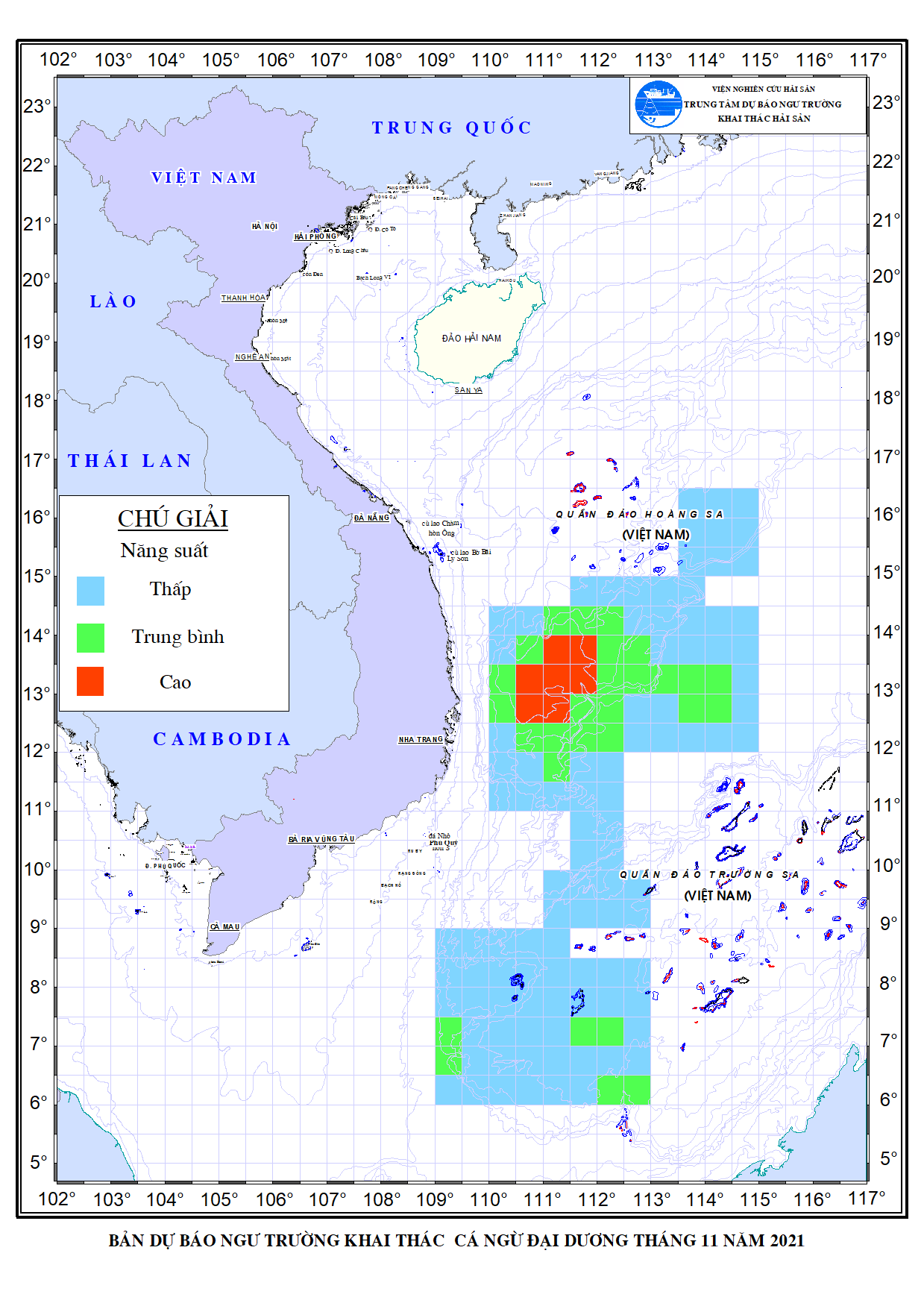Trang nhất/ Dự báo khai thác theo nghề Dự báo hạn tháng nghề câu cá ngừ đại dương tháng 11/2021 Mùa vụ: Vụ Bắc () | Năm dự báo: 2021 | Tháng dự báo: 11/2021 Nghề: Câu cá ngừ đại dương Cơ quan dự báo: Trung tâm Dự báo ngư trường Khai thác hải sản