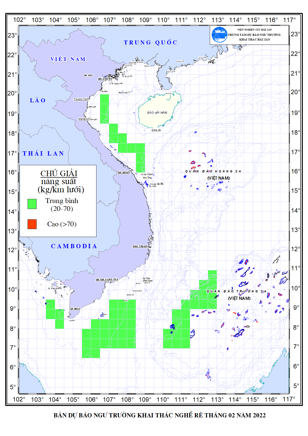 Trang nhất/ Dự báo khai thác theo nghề Dự báo hạn tháng nghề lưới rê tháng 02/2022 Mùa vụ: Vụ Bắc () | Năm dự báo: 2022 | Tháng dự báo: 02/2022 Nghề: Rê Cơ quan dự báo: Trung tâm Dự báo ngư trường Khai thác hải sản