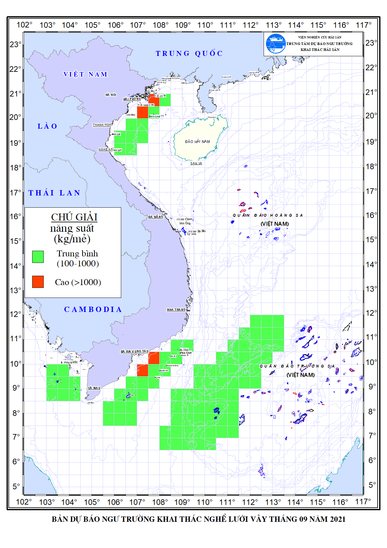 Trang nhất/ Dự báo khai thác theo nghề Dự báo hạn tháng nghề lưới vây tháng 9/2021 Mùa vụ: Vụ Nam () | Năm dự báo: 2021 | Tháng dự báo: 09/2021 Nghề: Vây Cơ quan dự báo: Trung tâm Dự báo ngư trường Khai thác hải sản