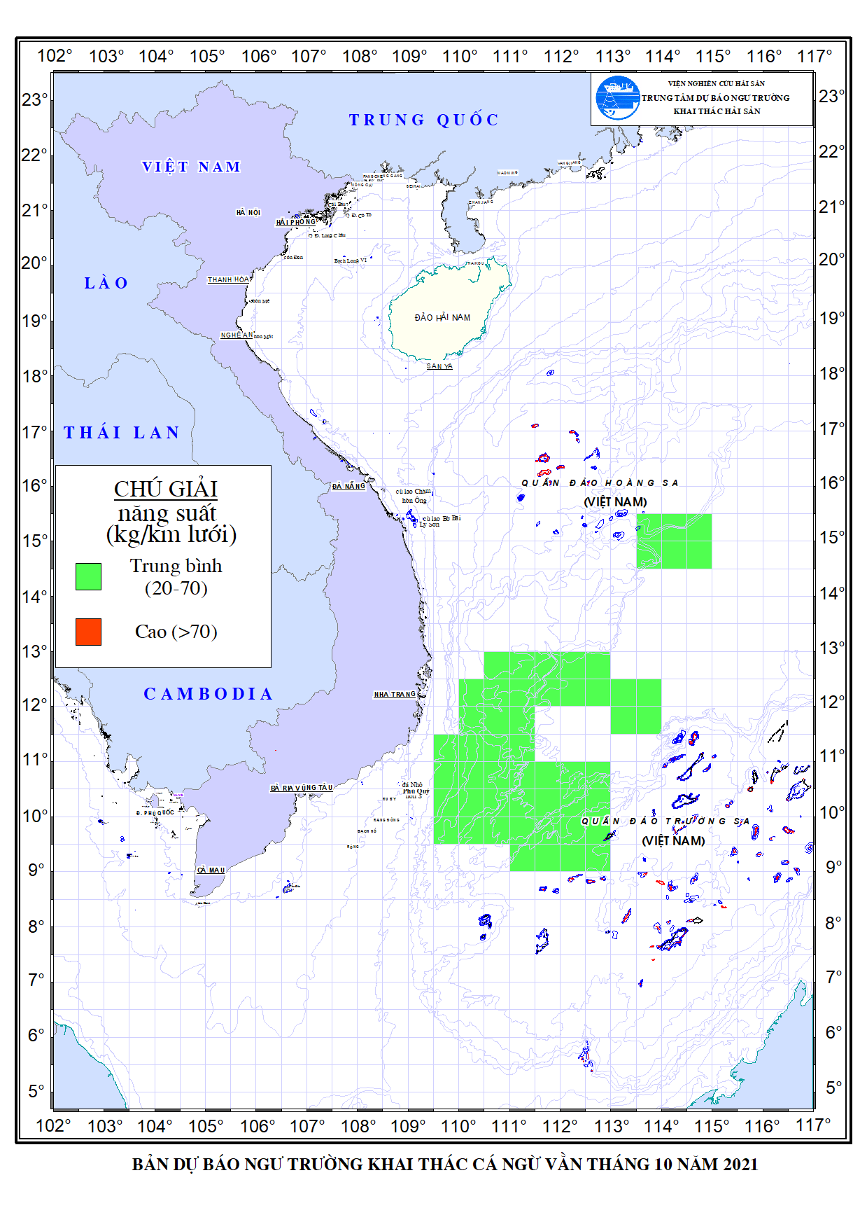 Trang nhất/ Dự báo khai thác theo đối tượng Dự báo hạn tháng ngư trường cá ngừ vằn tháng 10/2021 Mùa vụ: Vụ Bắc () | Năm dự báo: 2021 | Tháng dự báo: 10/2021 Đối tượng dự báo: Cá ngừ vằn Cơ quan dự báo: Trung tâm Dự báo ngư trường Khai thác hải sản