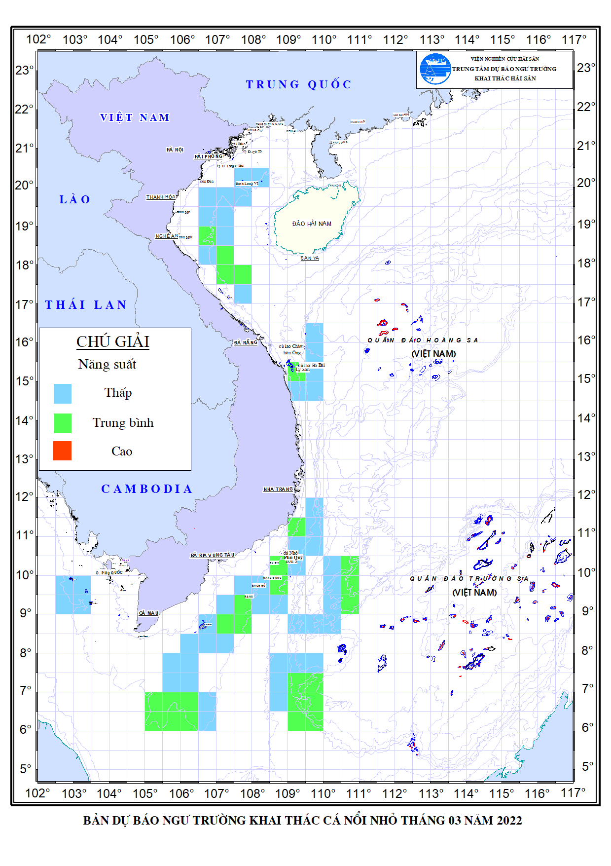 Trang nhất/ Dự báo khai thác theo đối tượng Dự báo hạn tháng ngư trường cá nổi nhỏ tháng 03/2022 Mùa vụ: Vụ Bắc () | Năm dự báo: 2022 | Tháng dự báo: 03/2022 Đối tượng dự báo: Cá nổi nhỏ Cơ quan dự báo: Trung tâm Dự báo ngư trường Khai thác hải sản