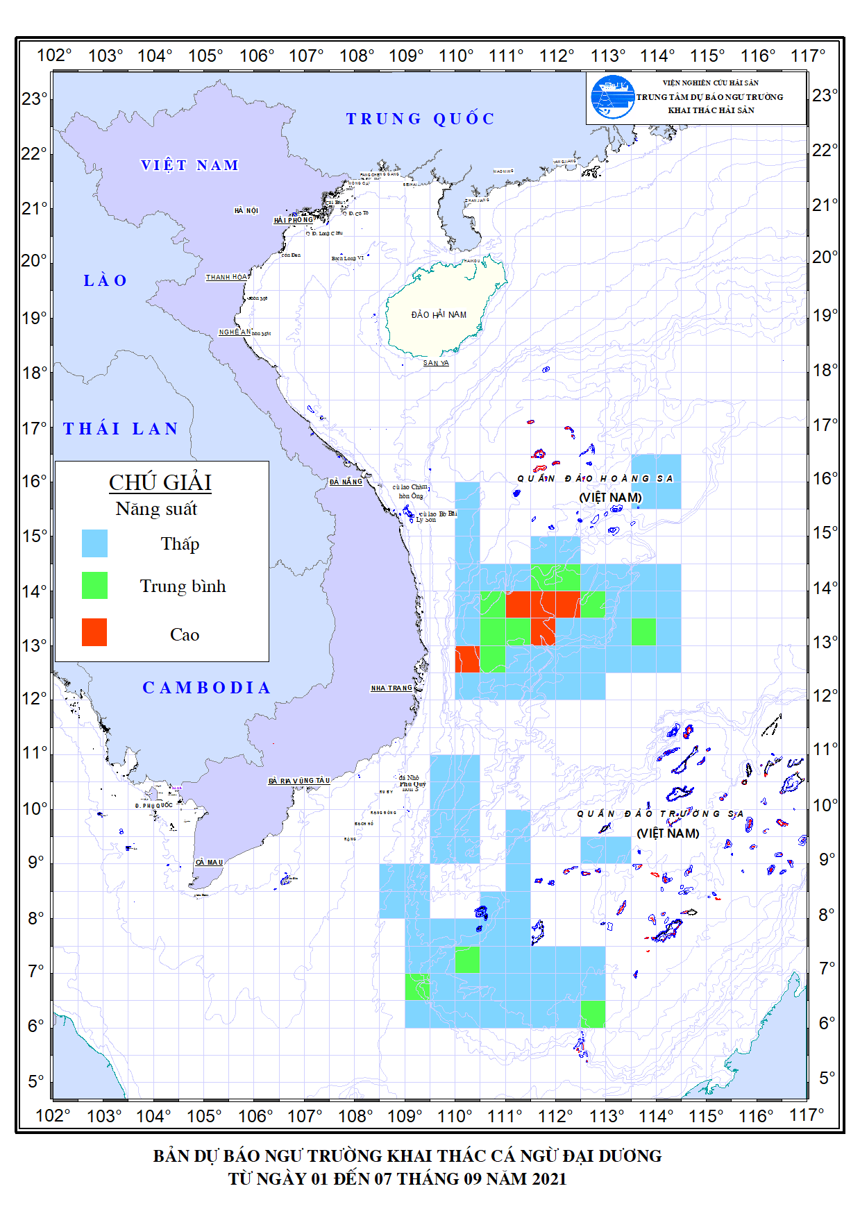 Trang nhất/ Dự báo khai thác theo nghề Dự báo hạn tuần nghề câu cá ngừ đại dương từ 01/9 - 07/9/2021 Mùa vụ: Vụ Nam () | Năm dự báo: 2021 | Tháng dự báo: 09/2021 Nghề: Câu cá ngừ đại dương Cơ quan dự báo: Trung tâm Dự báo ngư trường Khai thác hải sản