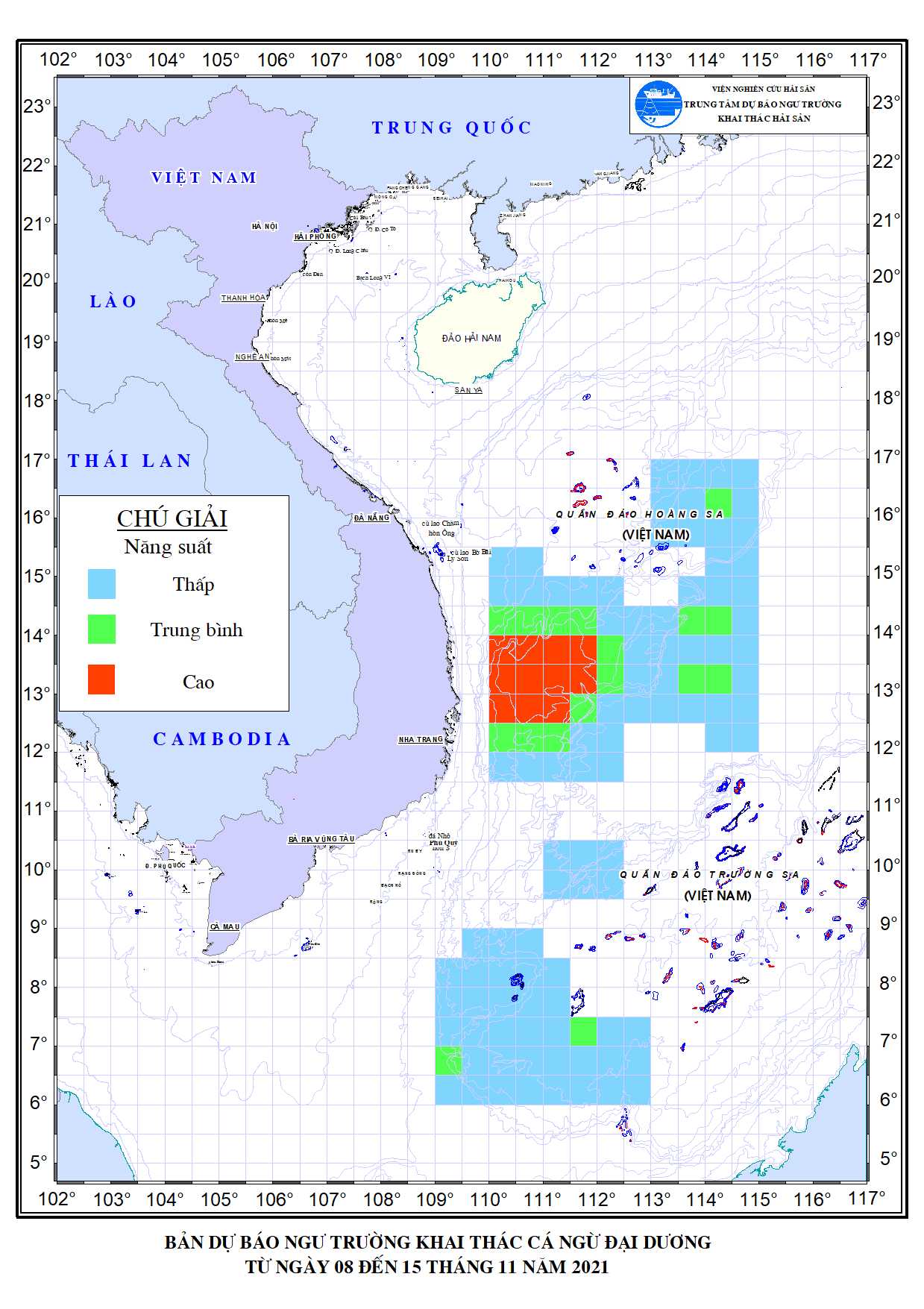 Trang nhất/ Dự báo khai thác theo nghề Dự báo hạn tuần nghề câu cá ngừ đại dương từ 08-15/11/2021 Mùa vụ: Vụ Bắc () | Năm dự báo: 2021 | Tháng dự báo: 11/2021 Nghề: Câu cá ngừ đại dương Cơ quan dự báo: Trung tâm Dự báo ngư trường Khai thác hải sản