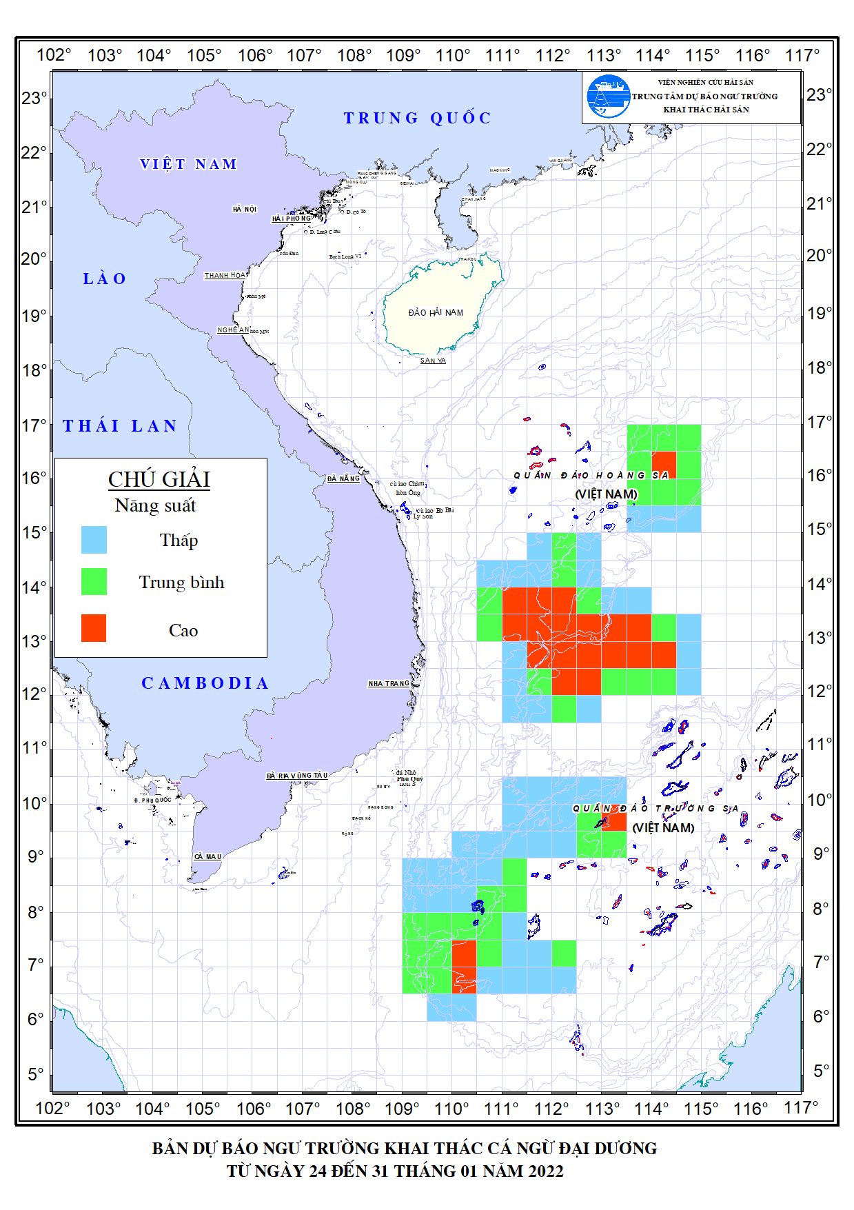 Các mục khác... Dự báo nghề câu cá ngừ đại dương từ 24-29/2/2024 Dự báo cá ngừ đại dương từ 16-23/2/2024 Dự báo cá ngừ đại dương từ 08-15/02/2024 Dự báo cá ngừ đại dương từ 01-07/02/2024 Dự báo ngư trường nghề lưới rê tháng 02/2024