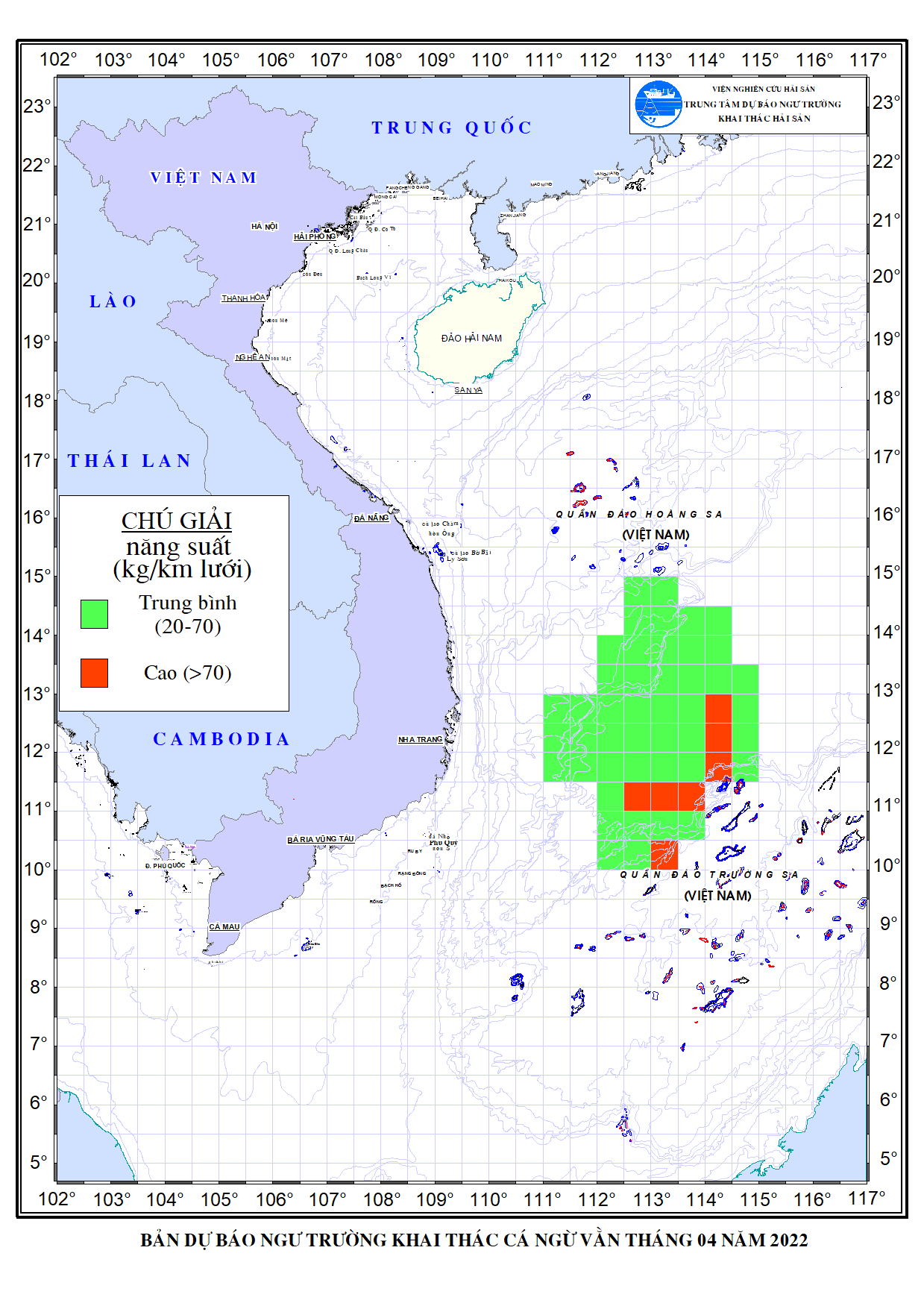 Trang nhất/ Dự báo khai thác theo đối tượng Dự báo khai thác cá ngừ vằn tháng 04/2022 Mùa vụ: Vụ Nam () | Năm dự báo: 2022 | Tháng dự báo: 04/2022 Đối tượng dự báo: Cá ngừ vằn Cơ quan dự báo: Trung tâm Dự báo ngư trường Khai thác hải sản