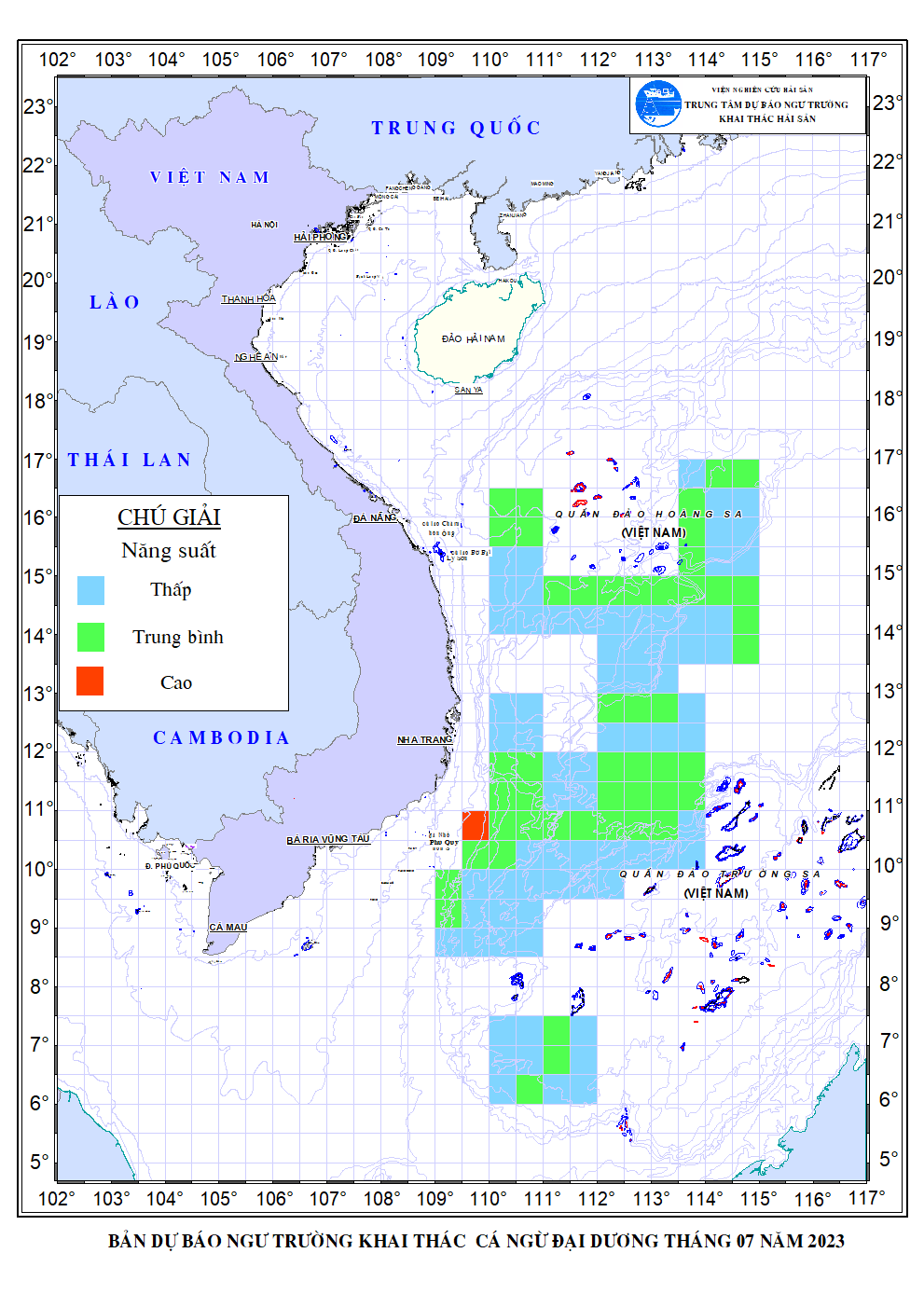 Trang nhất/ Dự báo khai thác theo nghề Dự báo nghề câu cá ngừ đại dương tháng 07/2023 Mùa vụ: Vụ Nam () | Năm dự báo: 2023 | Tháng dự báo: 07/2023 Nghề: Câu cá ngừ đại dương Cơ quan dự báo: Trung tâm Dự báo ngư trường Khai thác hải sản