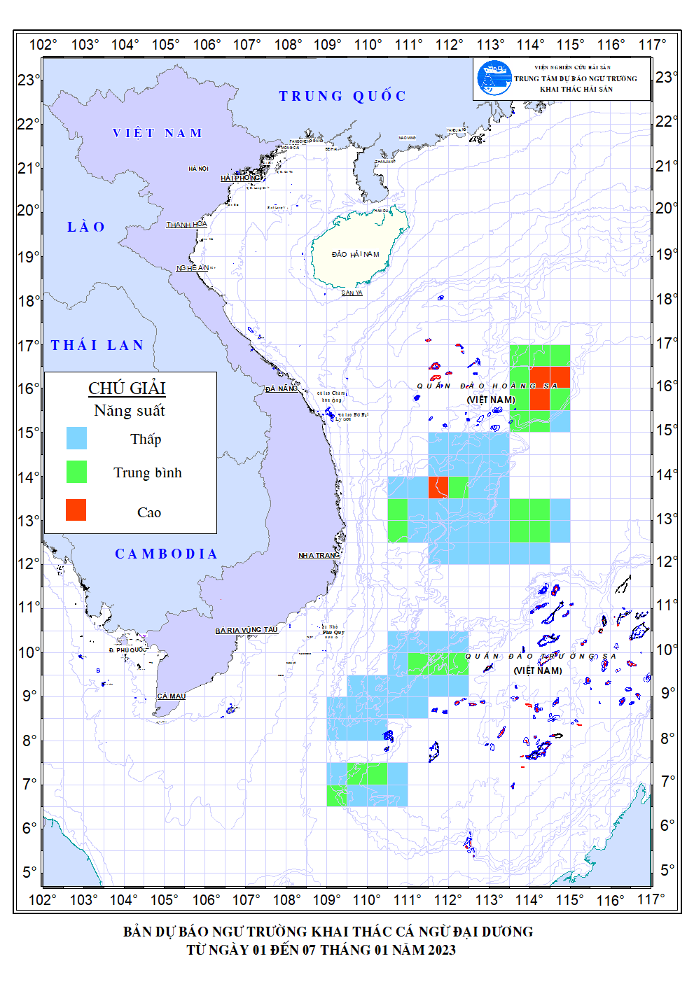 Trang nhất/ Dự báo khai thác theo nghề Dự báo nghề câu cá ngừ đại dương từ 01-07/01/2023 Mùa vụ: Vụ Bắc () | Năm dự báo: 2023 | Tháng dự báo: 01/2023 Nghề: Câu cá ngừ đại dương Cơ quan dự báo: Trung tâm Dự báo ngư trường Khai thác hải sản