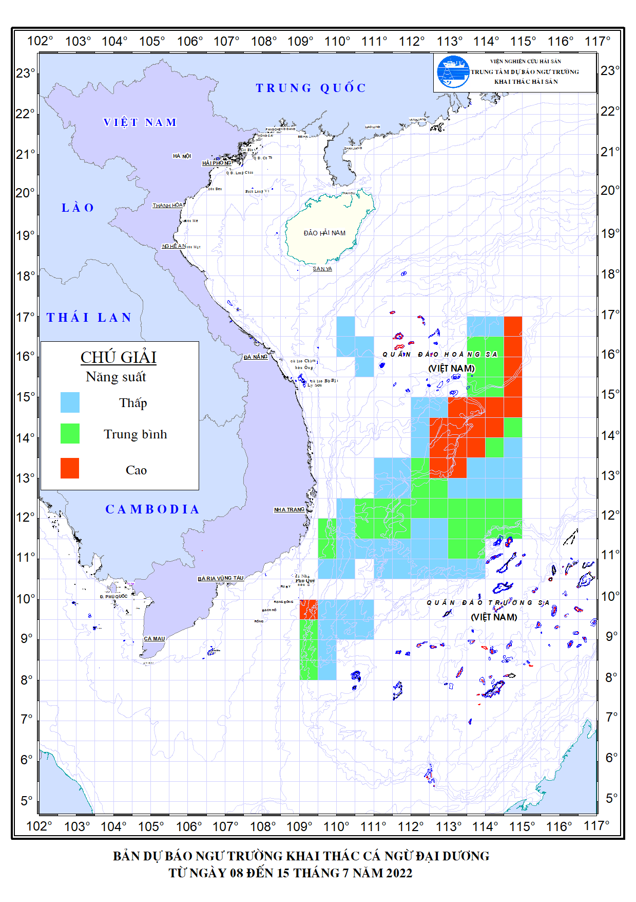 Trang nhất/ Dự báo khai thác theo nghề Dự báo nghề câu cá ngừ đại dương từ 8-15/7/2022 Mùa vụ: Vụ Nam () | Năm dự báo: 2022 | Tháng dự báo: 07/2022 Nghề: Câu cá ngừ đại dương Cơ quan dự báo: Trung tâm Dự báo ngư trường Khai thác hải sản