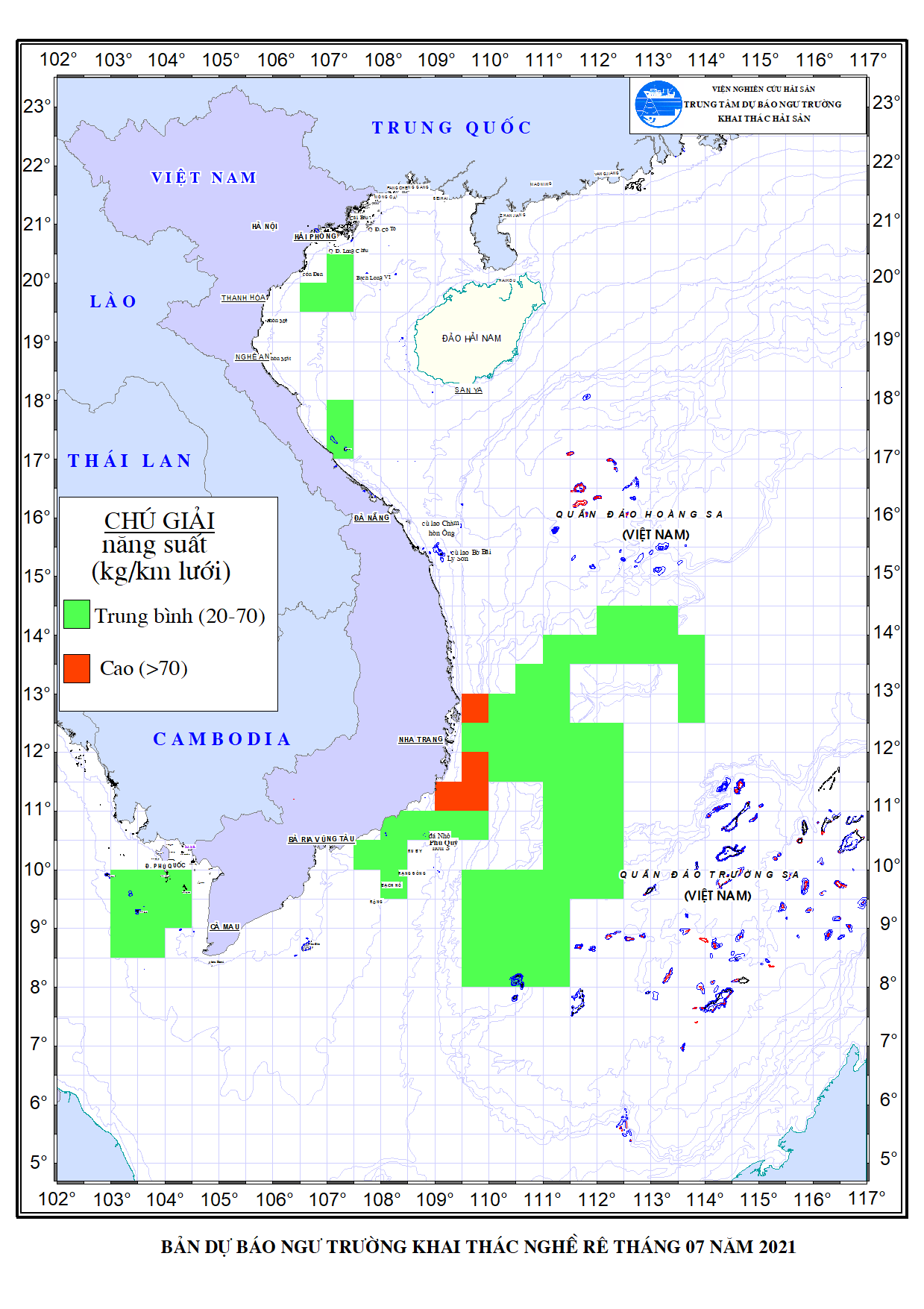Trang nhất/ Dự báo khai thác theo nghề Dự báo nghề lưới rê tháng 07/2021 Mùa vụ: Vụ Nam () | Năm dự báo: 2021 | Tháng dự báo: 07/2021 Nghề: Rê Cơ quan dự báo: Trung tâm Dự báo ngư trường Khai thác hải sản