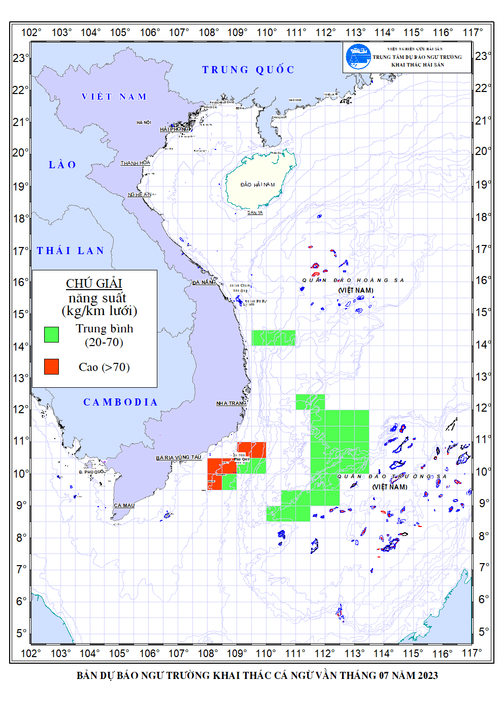 Trang nhất/ Dự báo khai thác theo đối tượng Dự báo ngư trường cá ngừ vằn tháng 7/2023 Mùa vụ: Vụ Nam () | Năm dự báo: 2023 | Tháng dự báo: 07/2023 Đối tượng dự báo: Cá ngừ vằn Cơ quan dự báo: Trung tâm Dự báo ngư trường Khai thác hải sản