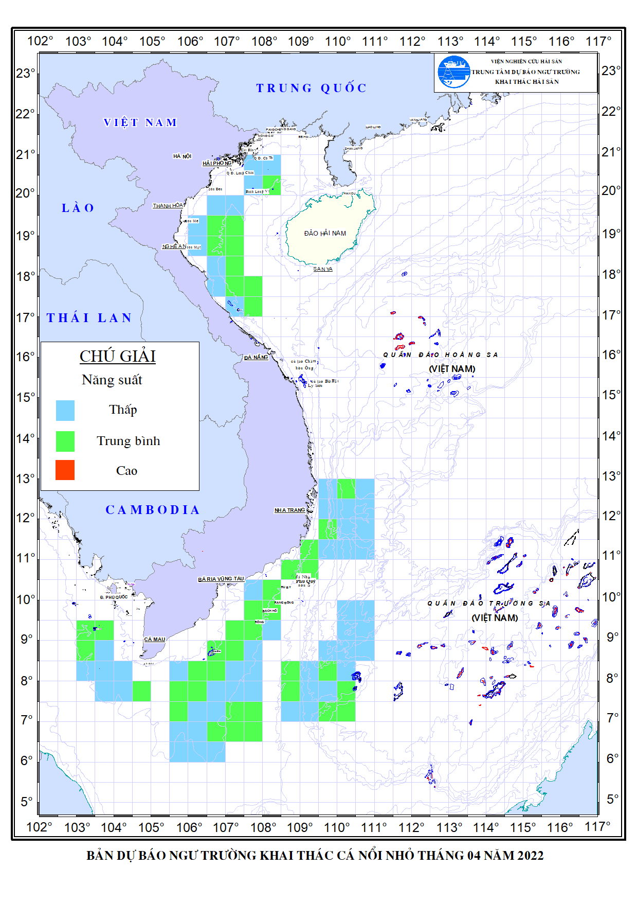 Trang nhất/ Dự báo khai thác theo đối tượng Dự báo ngư trường cá nổi nhỏ tháng 04/2022 Mùa vụ: Vụ Nam () | Năm dự báo: 2022 | Tháng dự báo: 04/2022 Đối tượng dự báo: Cá nổi nhỏ Cơ quan dự báo: Trung tâm Dự báo ngư trường Khai thác hải sản