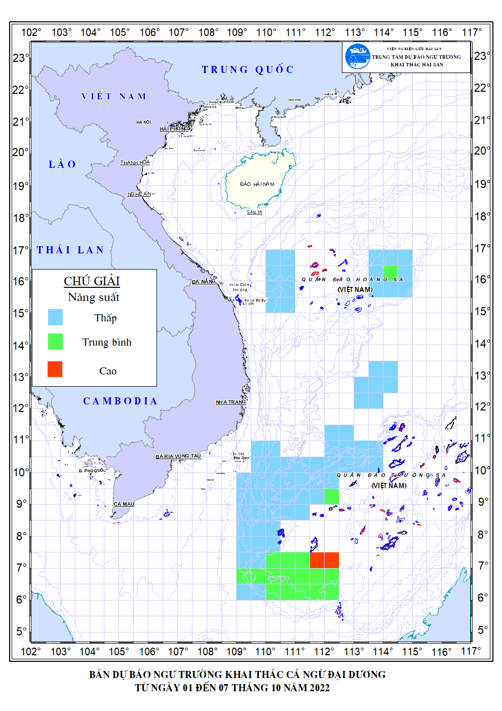 Trang nhất/ Dự báo khai thác theo nghề Dự báo ngư trường nghề câu cá ngừ đại dương từ 01-07/10/2022 Mùa vụ: Vụ Bắc () | Năm dự báo: 2022 | Tháng dự báo: 10/2022 Nghề: Câu cá ngừ đại dương Cơ quan dự báo: Trung tâm Dự báo ngư trường Khai thác hải sản