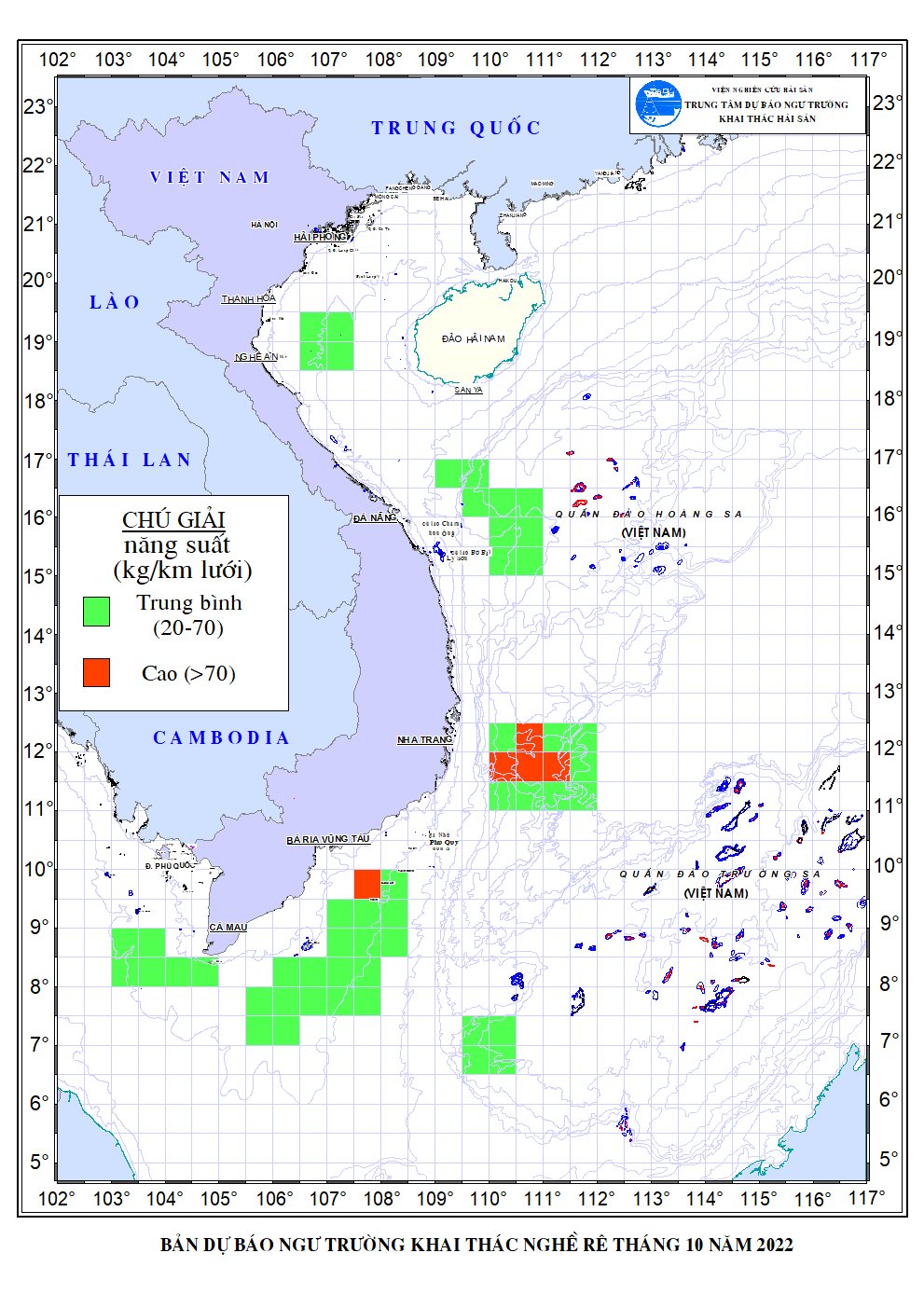 Trang nhất/ Dự báo khai thác theo nghề Dự báo ngư trường nghề lưới rê tháng 10/2022 Mùa vụ: Vụ Bắc () | Năm dự báo: 2022 | Tháng dự báo: 10/2022 Nghề: Rê Cơ quan dự báo: Trung tâm Dự báo ngư trường Khai thác hải sản