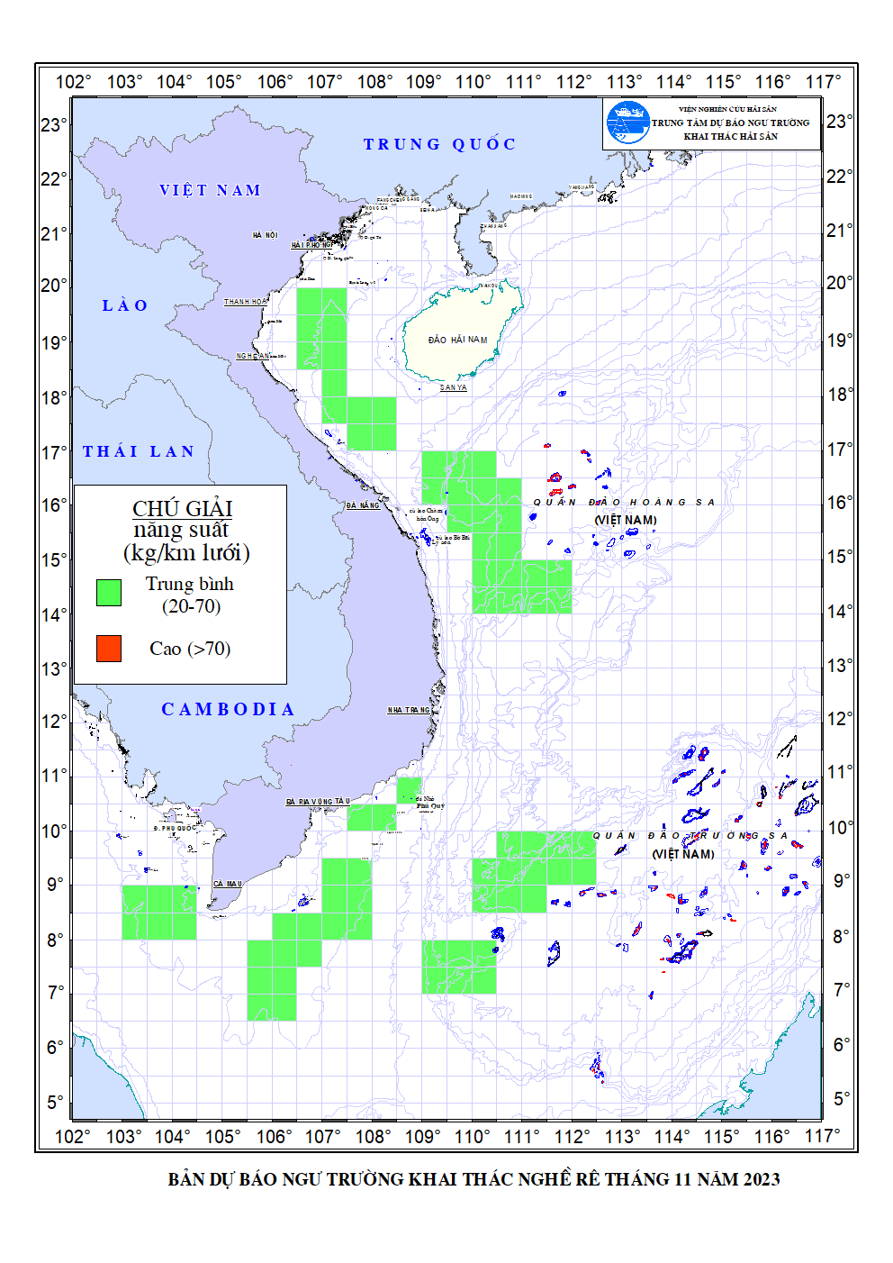 Trang nhất/ Dự báo khai thác theo nghề Dự báo ngư trường nghề lưới rê tháng 11/2023 Mùa vụ: Vụ Bắc () | Năm dự báo: 2023 | Tháng dự báo: 11/2023 Nghề: Rê Cơ quan dự báo: Trung tâm Dự báo ngư trường Khai thác hải sản