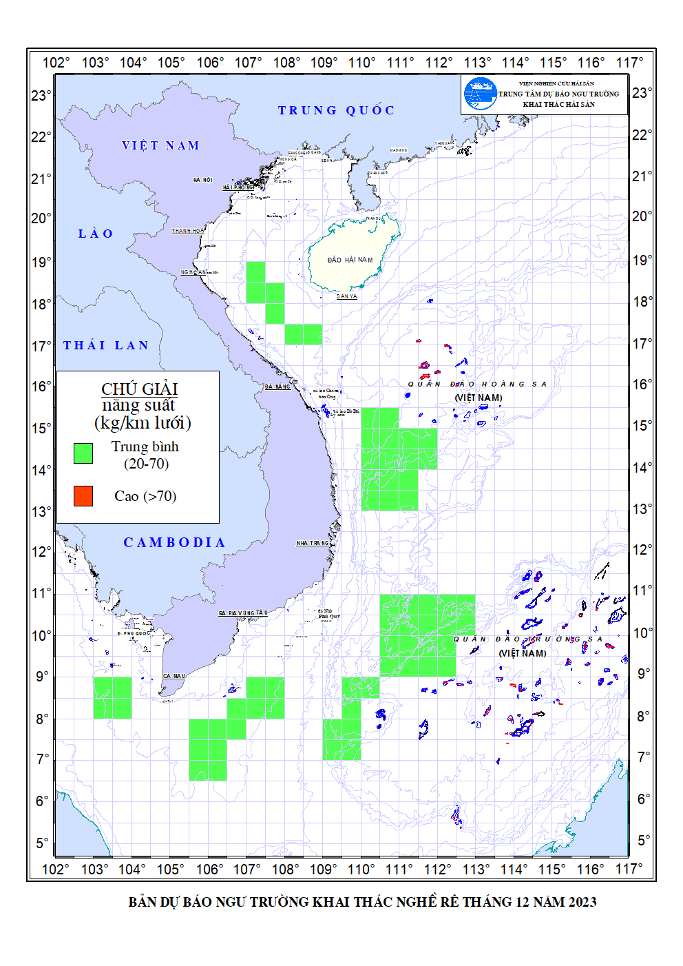 Trang nhất/ Dự báo khai thác theo nghề Dự báo ngư trường nghề lưới rê tháng 12/2023 Mùa vụ: Vụ Bắc () | Năm dự báo: 2023 | Tháng dự báo: 12/2023 Nghề: Rê Cơ quan dự báo: Trung tâm Dự báo ngư trường Khai thác hải sản