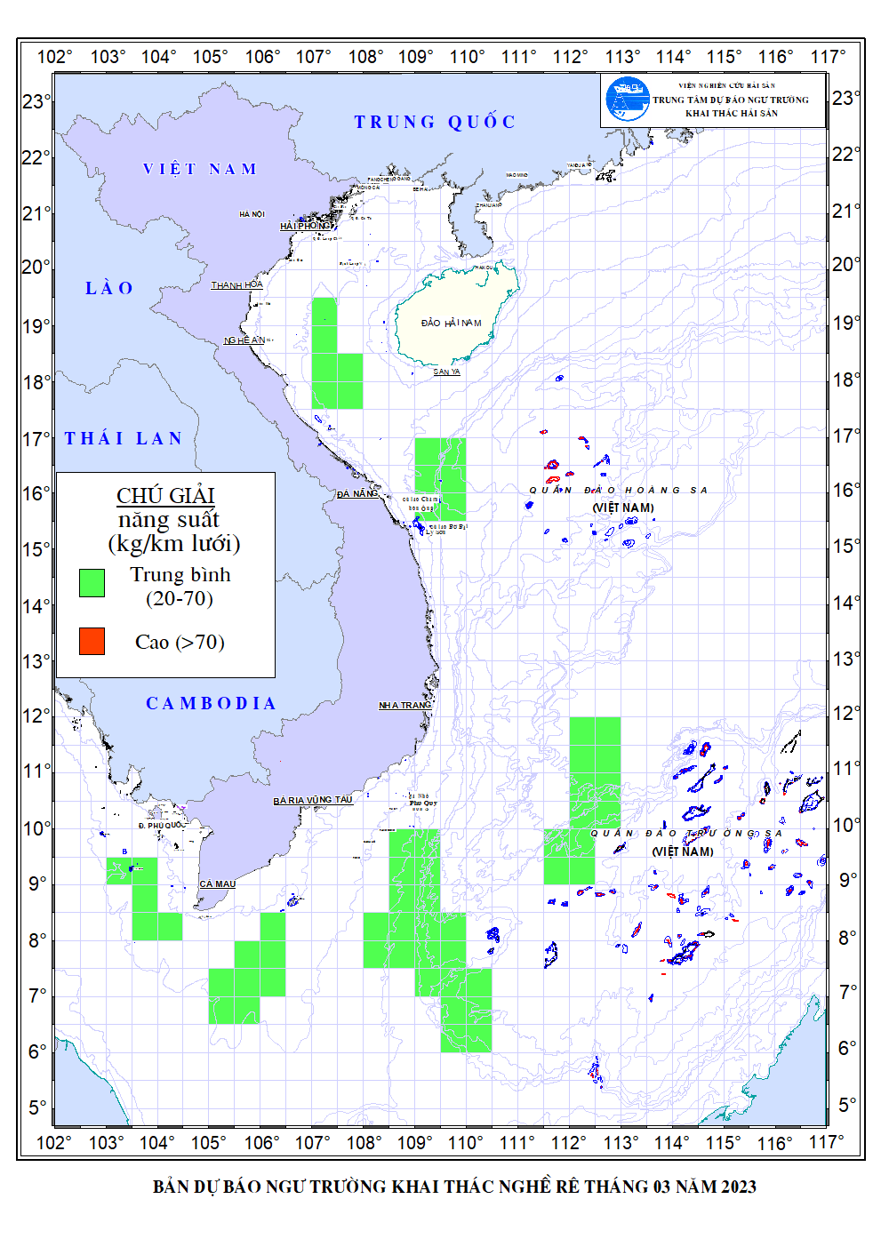 Trang nhất/ Dự báo khai thác theo nghề Dự báo ngư trường nghề lưới rê tháng 3/2023 Mùa vụ: Vụ Bắc () | Năm dự báo: 2023 | Tháng dự báo: 03/2023 Nghề: Câu cá ngừ đại dương Cơ quan dự báo: Trung tâm Dự báo ngư trường Khai thác hải sản